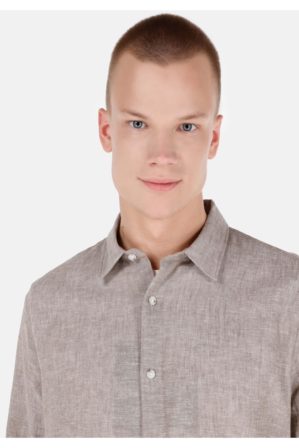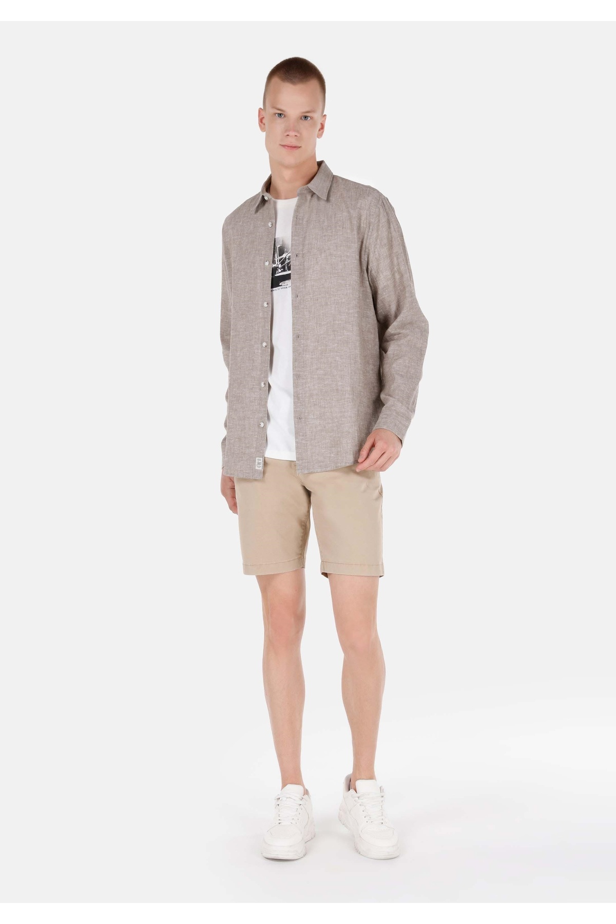خرید اینترنتی پیراهن مردانه آستین بلند قهوهای ساده یقه گرد راحت برند کالینز Colin’s اورجینال از Colin’s نمایندگی ترکیه