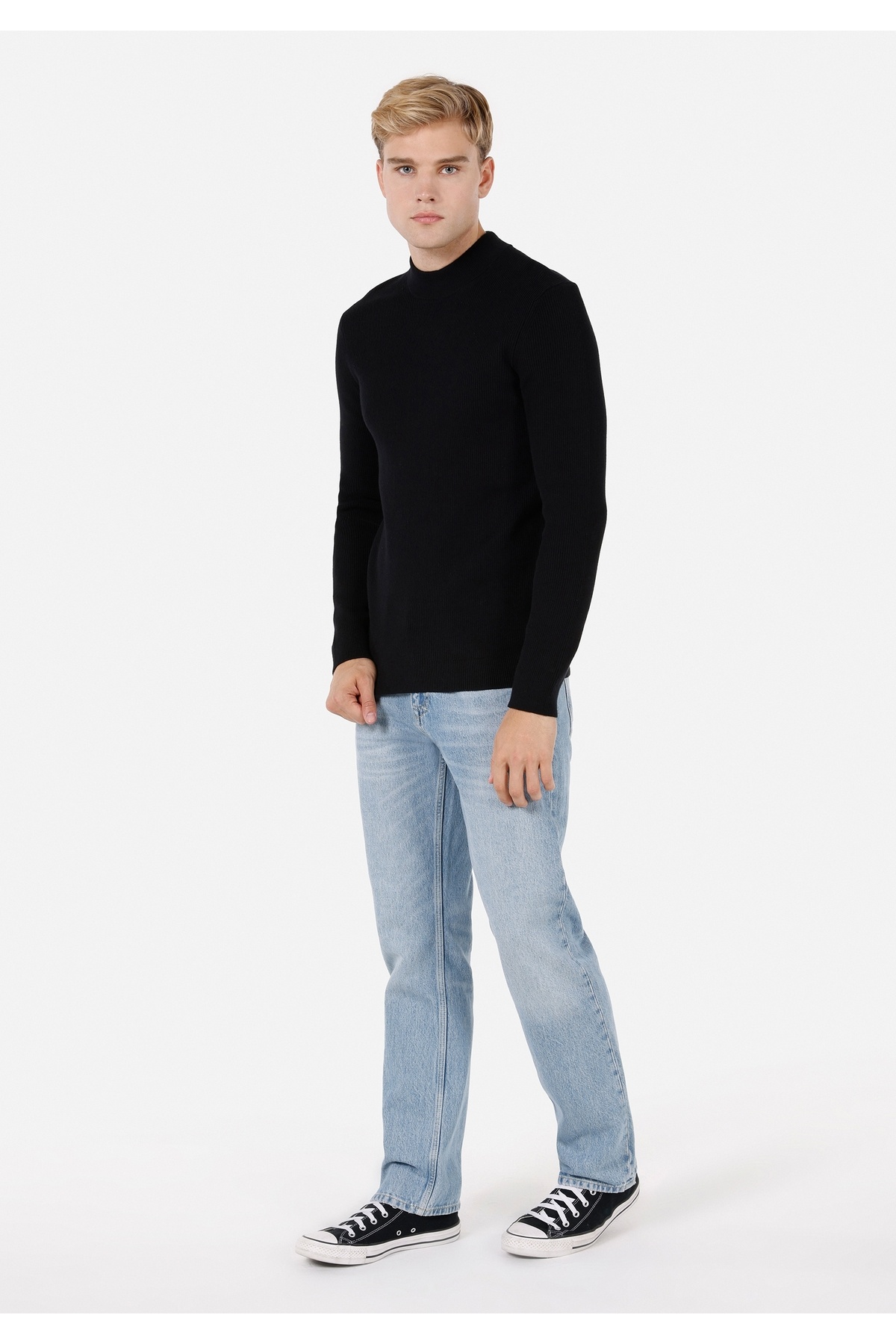 خرید اینترنتی ژاکت مشکی مردانه یقه بلند و باریک طرح ژاکارد برند کالینز Colin’s اورجینال از Colin’s نمایندگی ترکیه