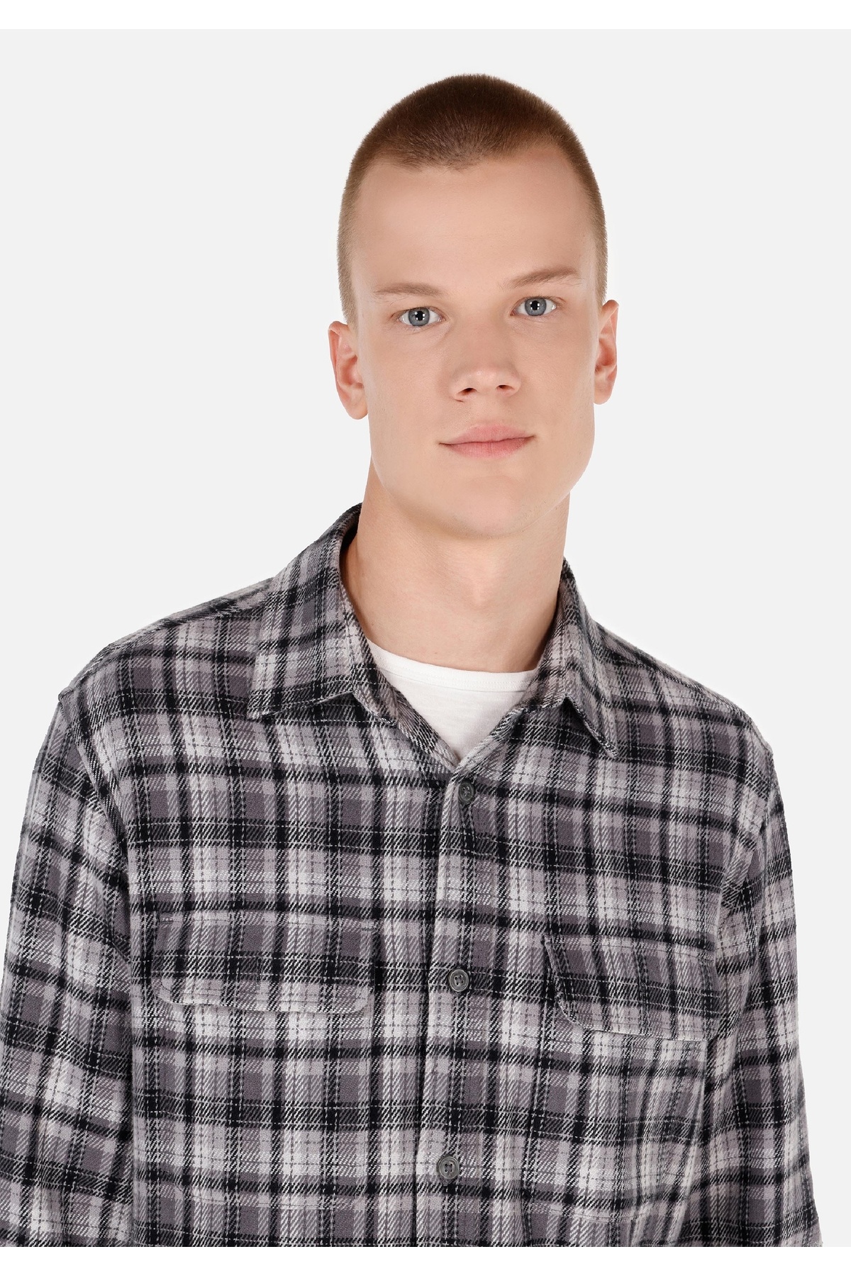 خرید اینترنتی پیراهن مردانه آستین بلند خاکستری طرح چهارخانه یقه گرد معمولی برند کالینز Colin’s اورجینال از Colin’s نمایندگی و فروشگاه معتبر ترکیه