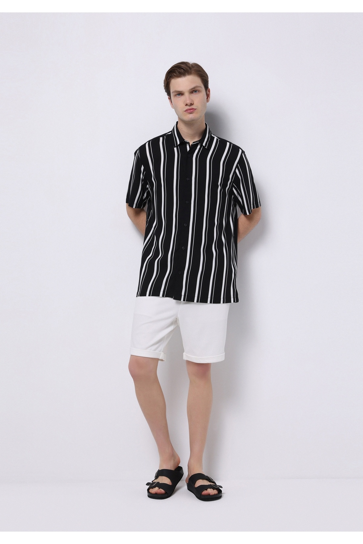 خرید اینترنتی پیراهن مردانه آستین کوتاه مشکی راه راه یقه گرد معمولی برند کالینز Colin’s اورجینال از Colin’s نمایندگی ترکیه