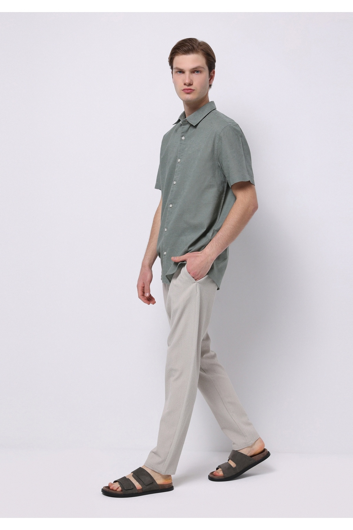 خرید اینترنتی پیراهن مردانه آستین کوتاه سبز ترکیبی کتان یقه گرد ساده برند کالینز Colin’s اورجینال از Colin’s نمایندگی ترکیه