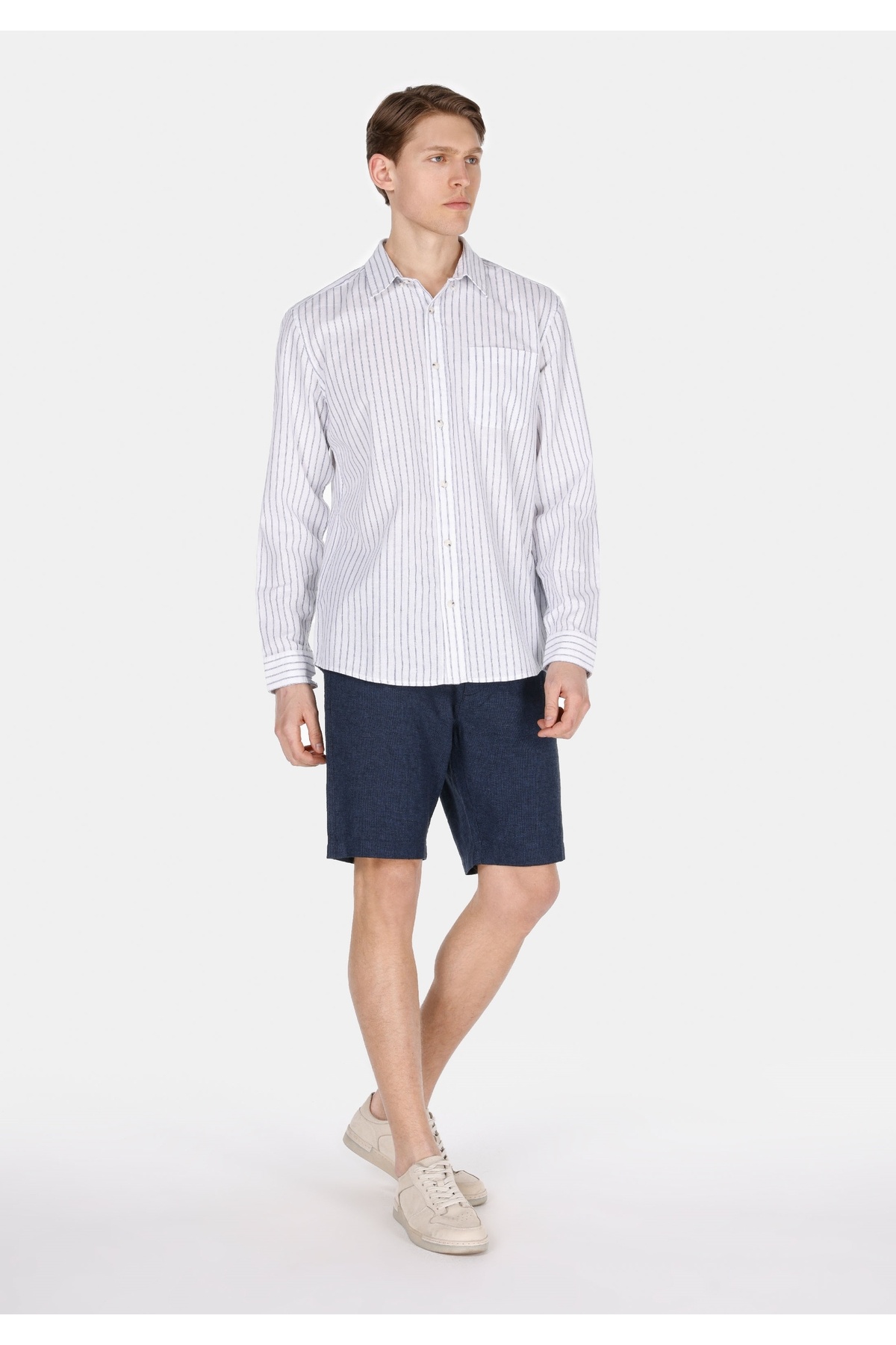 خرید اینترنتی پیراهن مردانه آستین بلند راه راه یقه گرد معمولی، ترکیبی از کتان و سرمه ای برند کالینز Colin’s اورجینال از Colin’s نمایندگی و فروشگاه معتبر ترکیه