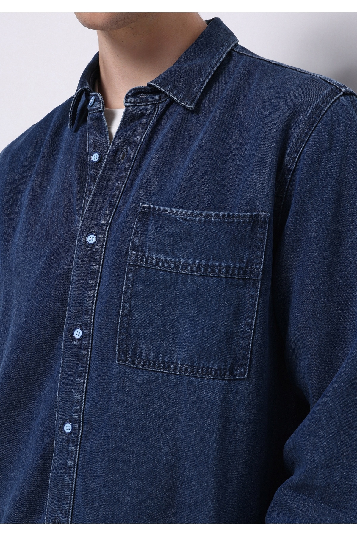 خرید اینترنتی پیراهن آستین بلند مردانه ساده طرح اکولوژیکی آبی، یقه کلاسیک معمولی فیت برند کالینز Colin’s اورجینال از Colin’s نمایندگی و فروشگاه معتبر ترکیه