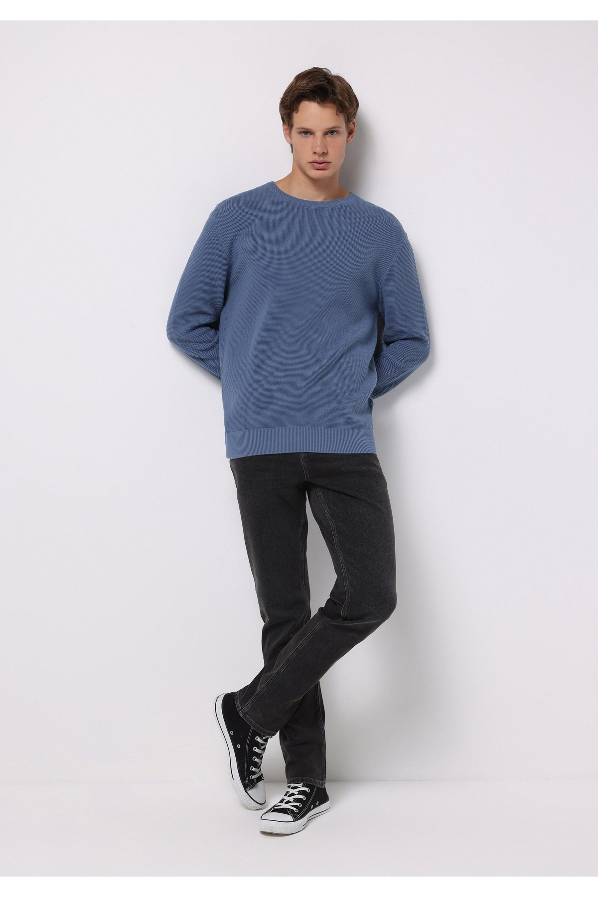 خرید اینترنتی ژاکت آبی مردانه یقه گرد معمولی فیت طرح ژاکارد برند کالینز Colin’s اورجینال از Colin’s نمایندگی و فروشگاه معتبر ترکیه