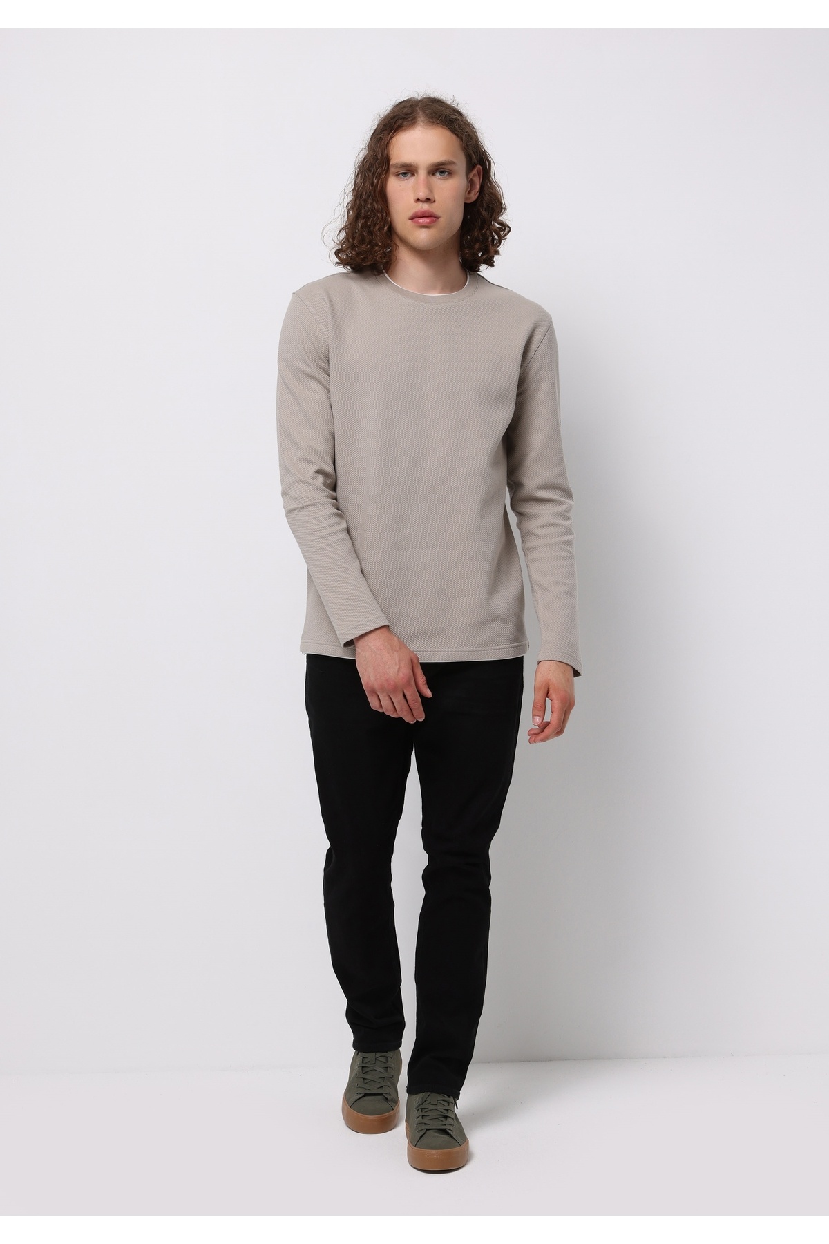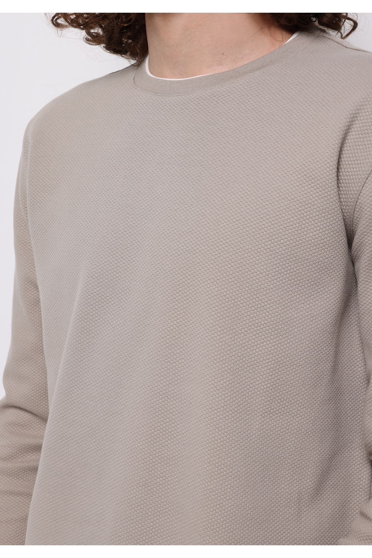 خرید اینترنتی تیشرت آستین بلند مردانه قهوهای طرح ژاکارد یقه گرد معمولی فیت برند کالینز Colin’s اورجینال از Colin’s نمایندگی و فروشگاه معتبر ترکیه