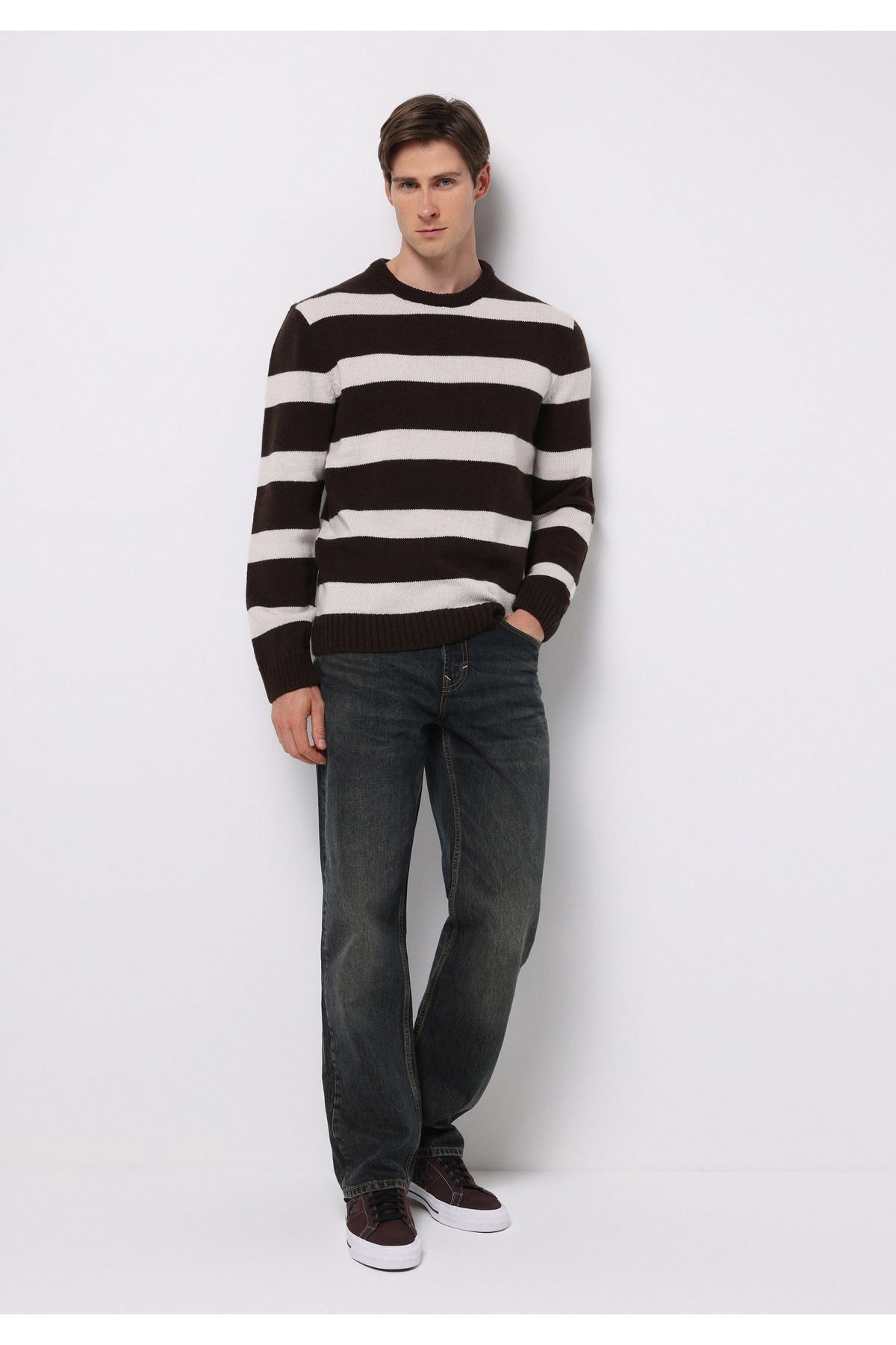 خرید اینترنتی ژاکت مردانه قهوهای طرح ژاکارد یقه گرد معمولی فیت برند کالینز Colin’s اورجینال از Colin’s نمایندگی ترکیه