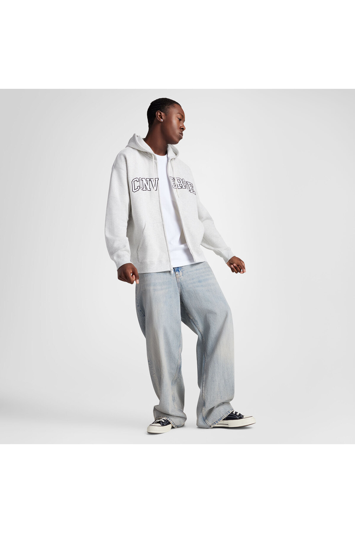 خرید اینترنتی هودی کلاسیک مردانه خاکستری زیپ دار برند کانورس Converse اورجینال از INTERSPORT نمایندگی ترکیه