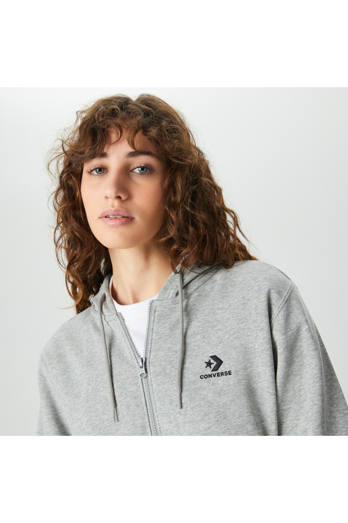 خرید اینترنتی بالاپوش لباس ورزشی با زیپ کامل یونیسکس سرپوش خاکستری استار دوزی شده شورون استاندارد برند کانورس Converse اورجینال از SuperStep نمایندگی ترکیه