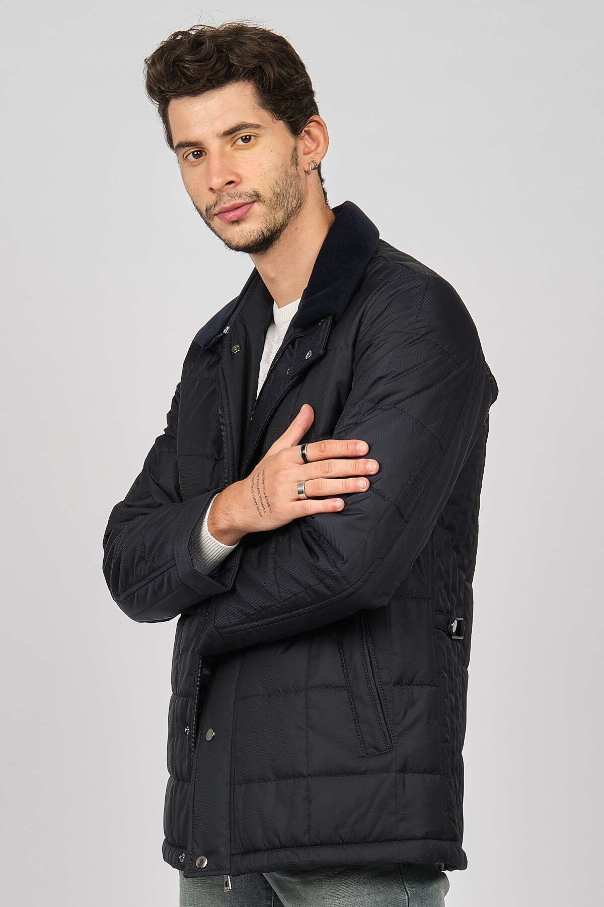 خرید اینترنتی پالتو خزدار مردانه طرح دار سرمه ای ۴۹۲۷۰۰۰ برند daynax اورجینال از ModaCadiri نمایندگی ترکیه