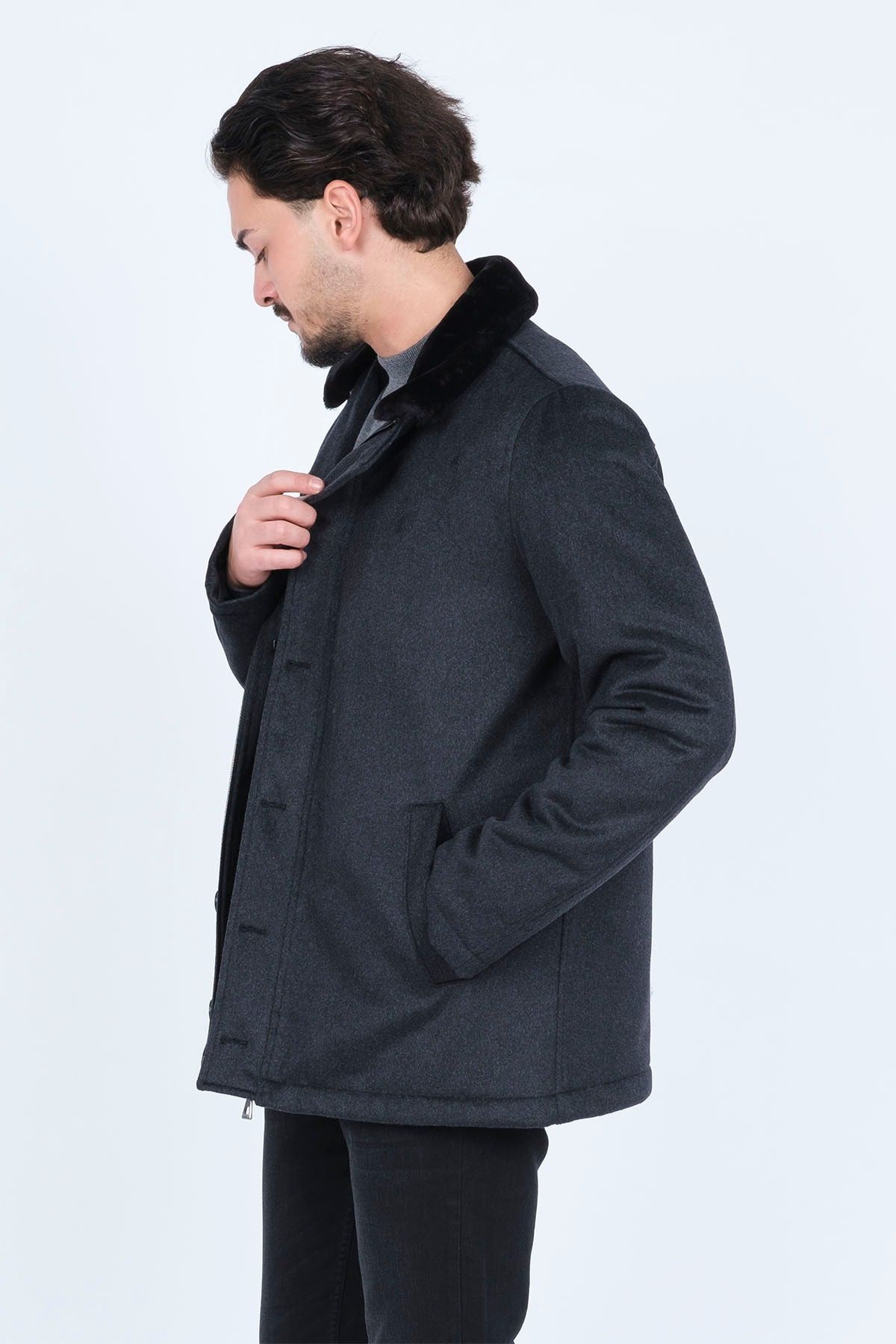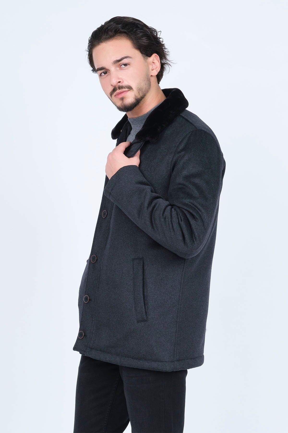 خرید اینترنتی کاپشن پشمی یقه خز مردانه دودی ۴۹۲۱۶۰۰ برند daynax اورجینال از ModaCadiri نمایندگی ترکیه
