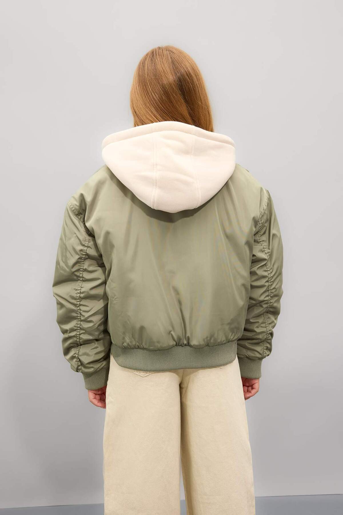 خرید اینترنتی کاپشن بمبر دخترانه با کلاه جداشونده، آستین‌های چین‌دار، جیب‌های دکمه‌دار C5336A824WN برند دفاکتو Defacto اورجینال از DeFacto نمایندگی ترکیه