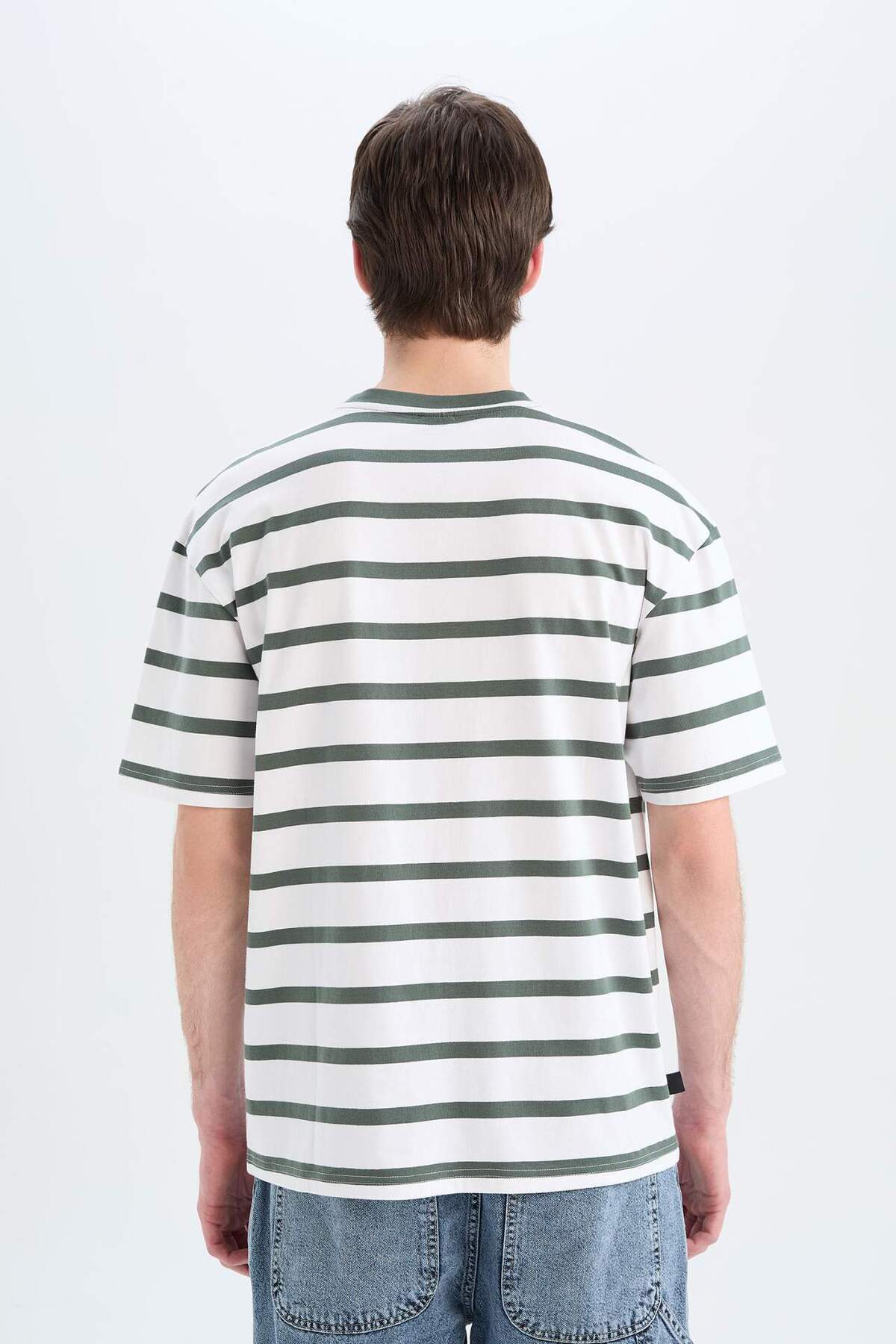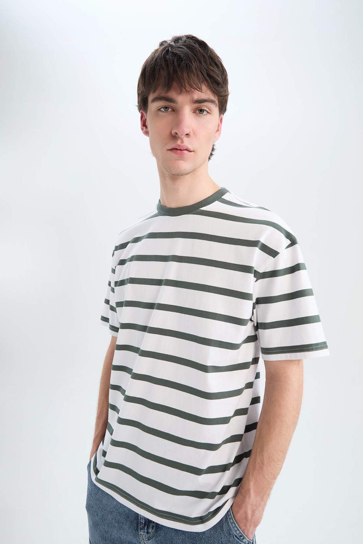 خرید اینترنتی تی شرت آستین کوتاه راه راه 100% پنبه ای باکسی Fit Crew E1160AX25SM برند دفاکتو Defacto اورجینال از DeFacto نمایندگی ترکیه