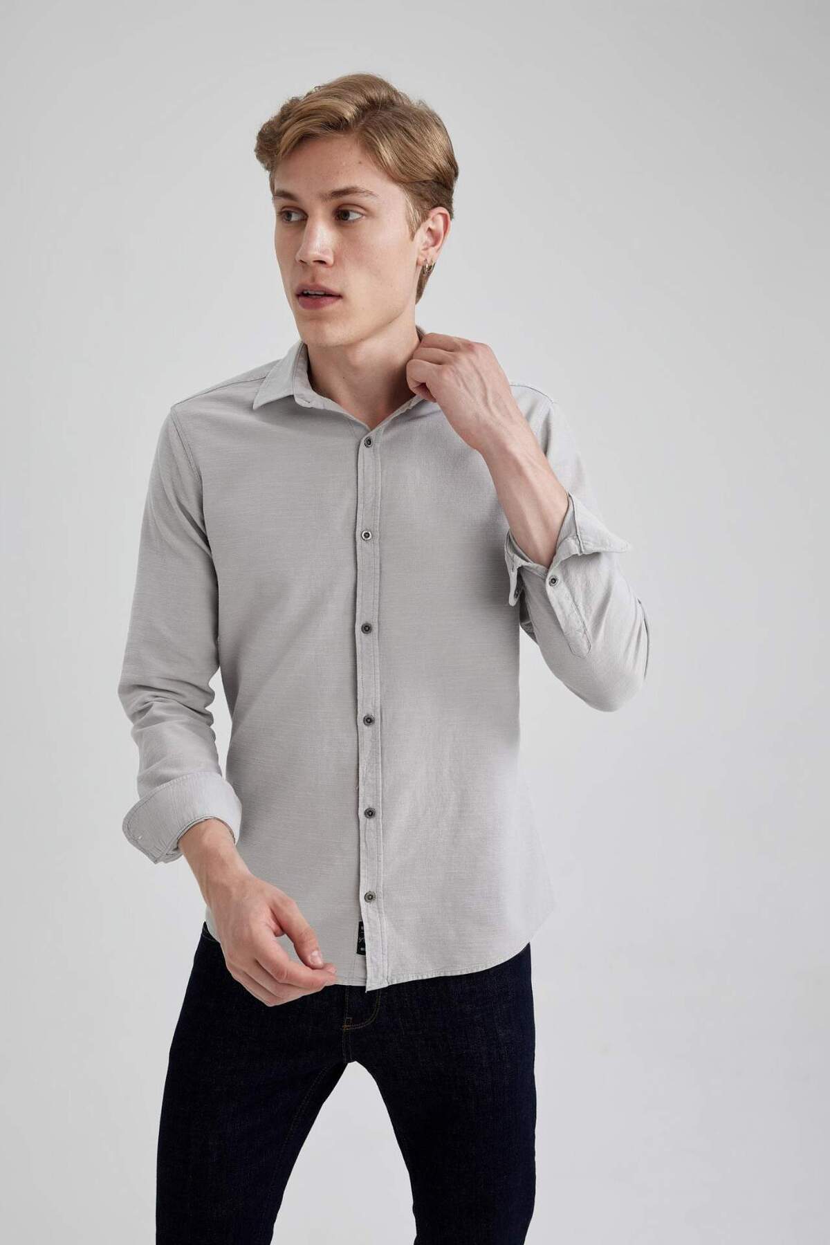 خرید اینترنتی اسلیم فیت پیراهن آستین بلند ساده ساده و نخی ساده A4644AX23AU برند دفاکتو Defacto اورجینال از DeFacto نمایندگی ترکیه