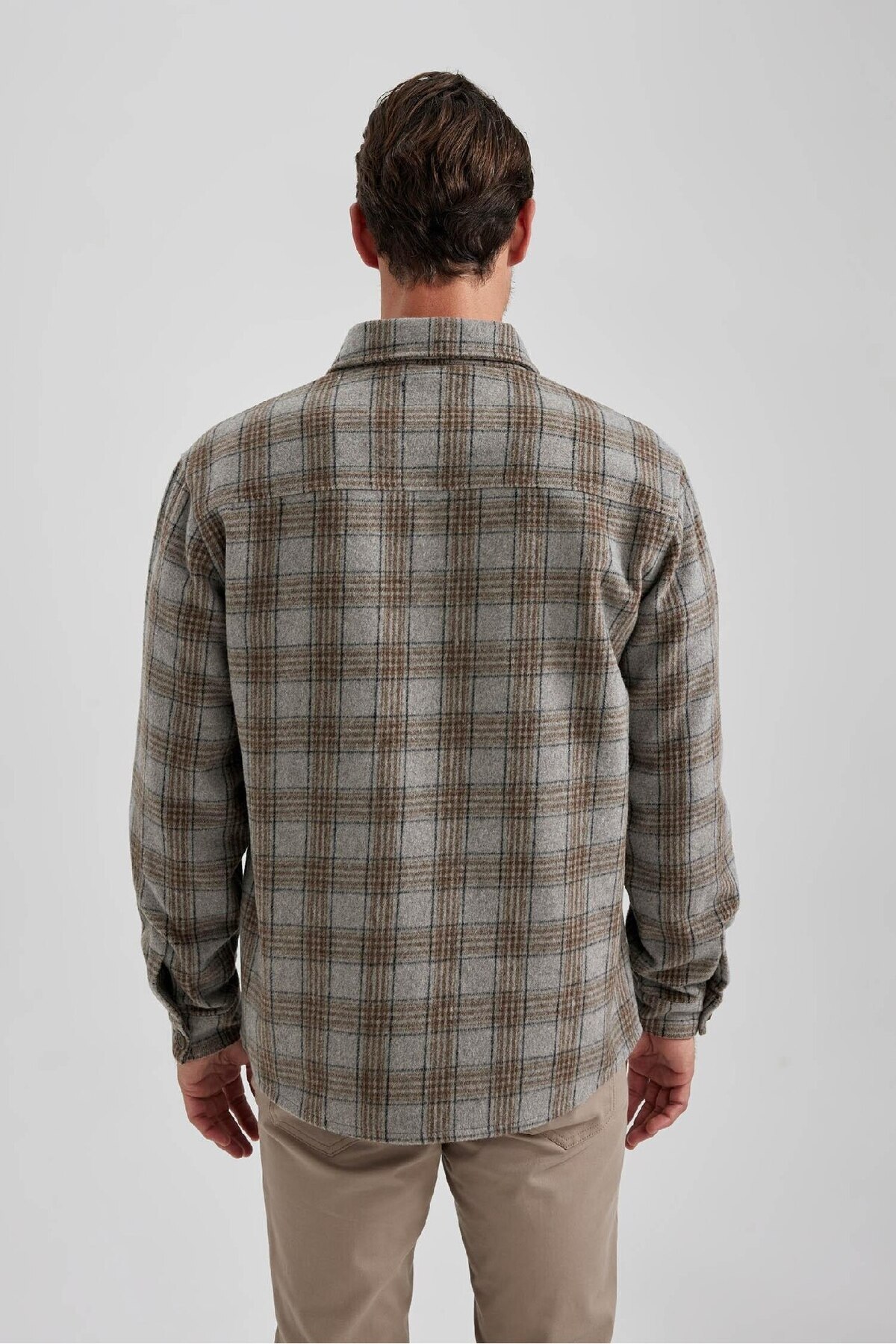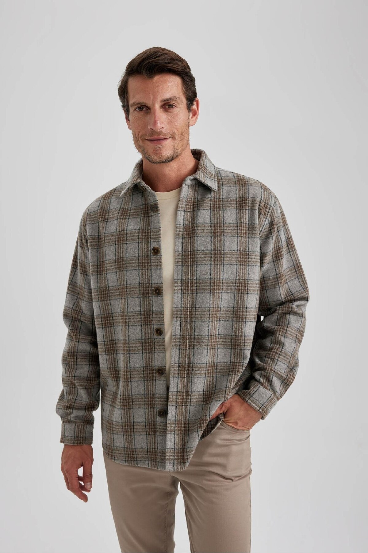 ژاکت ریلکس فیت پیراهن چهارخانه پارچه یقه دار ضخیم یک گزینه شیک و راحت است.