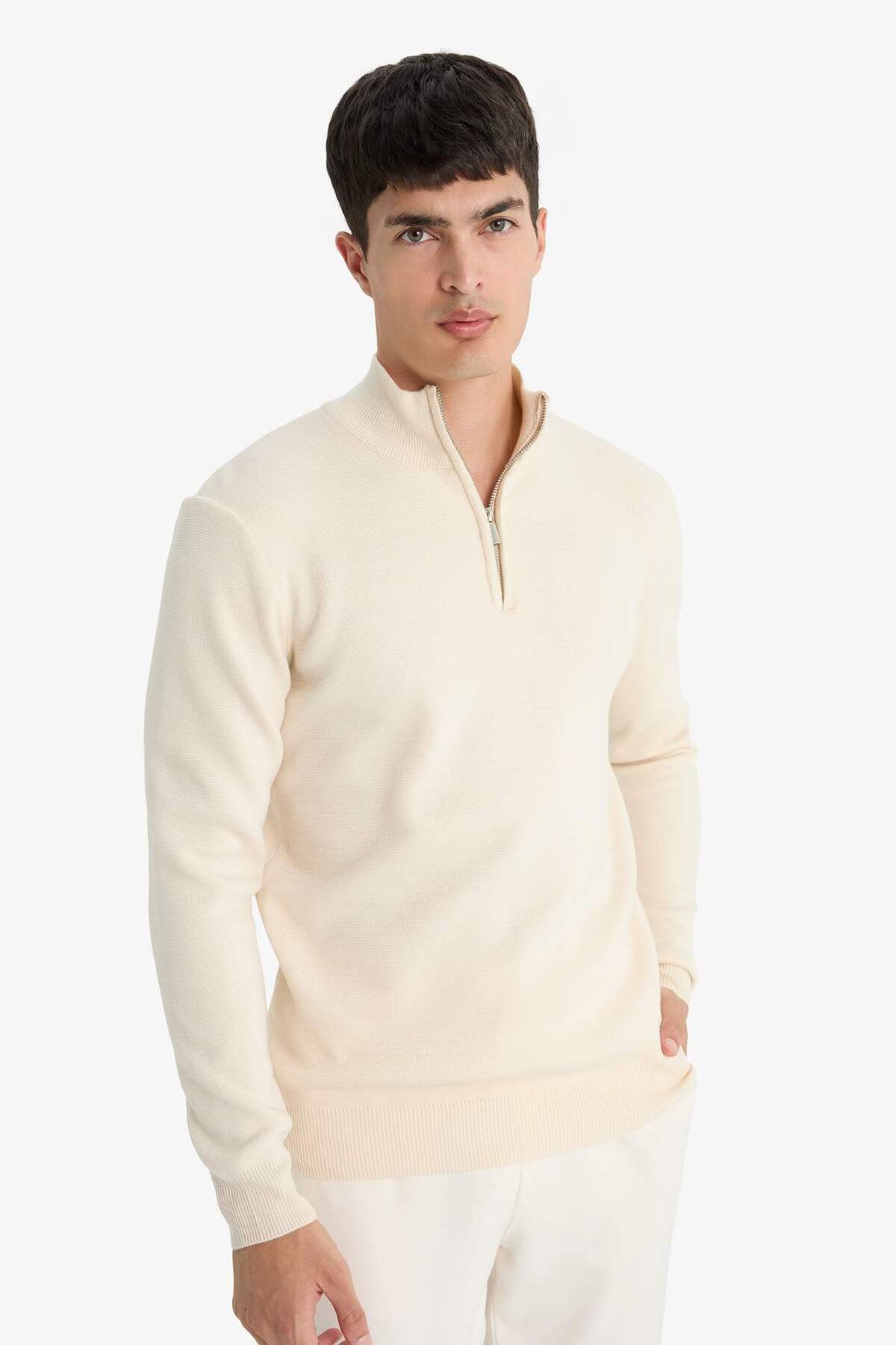 خرید اینترنتی ژاکت کشباف ساده ساده پایه یقه ای زیپ دار رگولار آبی رگولار A5184AX23WN برند دفاکتو Defacto اورجینال از DeFacto نمایندگی ترکیه