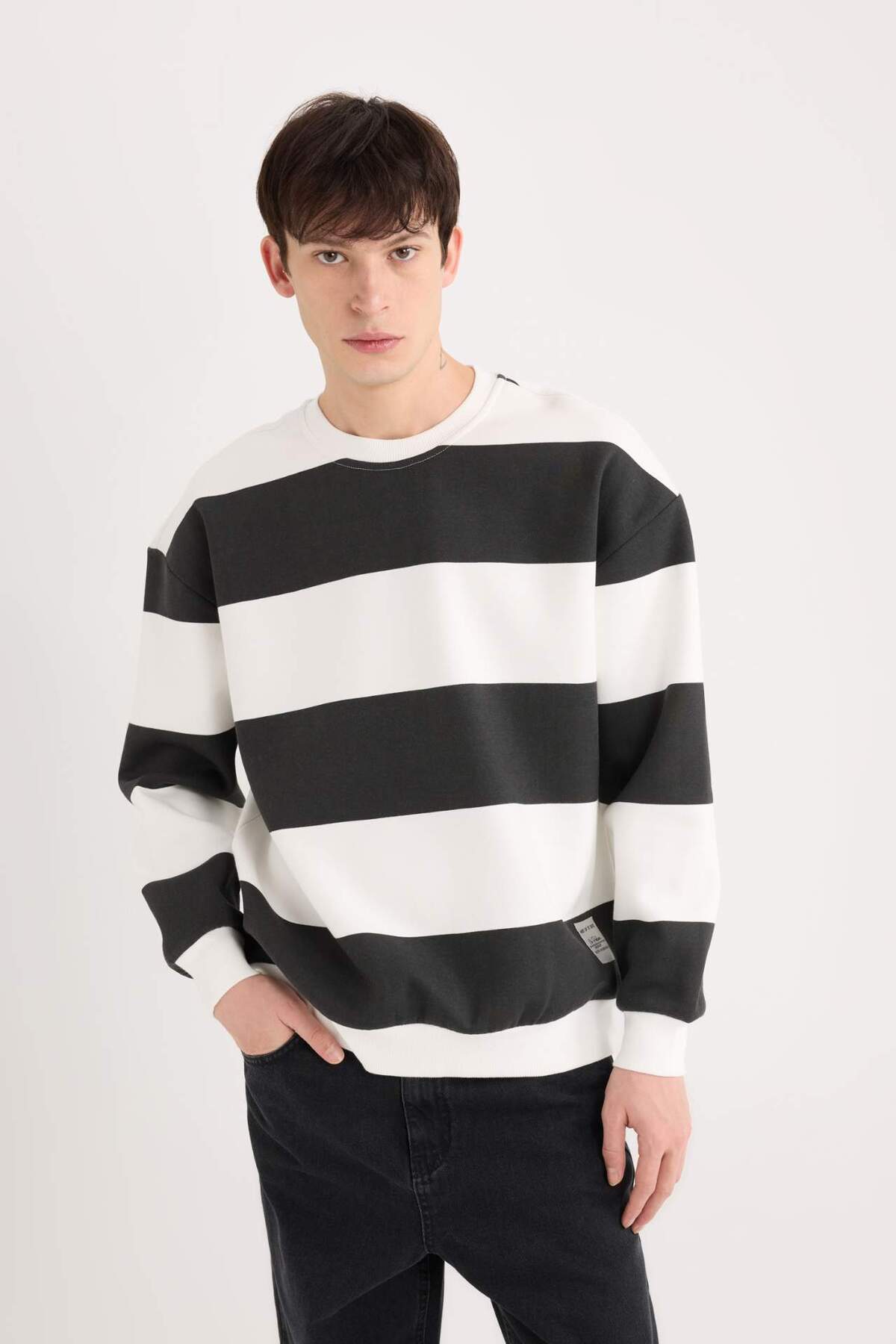 خرید اینترنتی سویشرت با یقه بافته شده راه راه A9066AX24AU برند دفاکتو Defacto اورجینال از DeFacto نمایندگی ترکیه