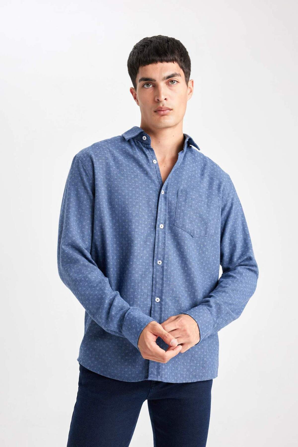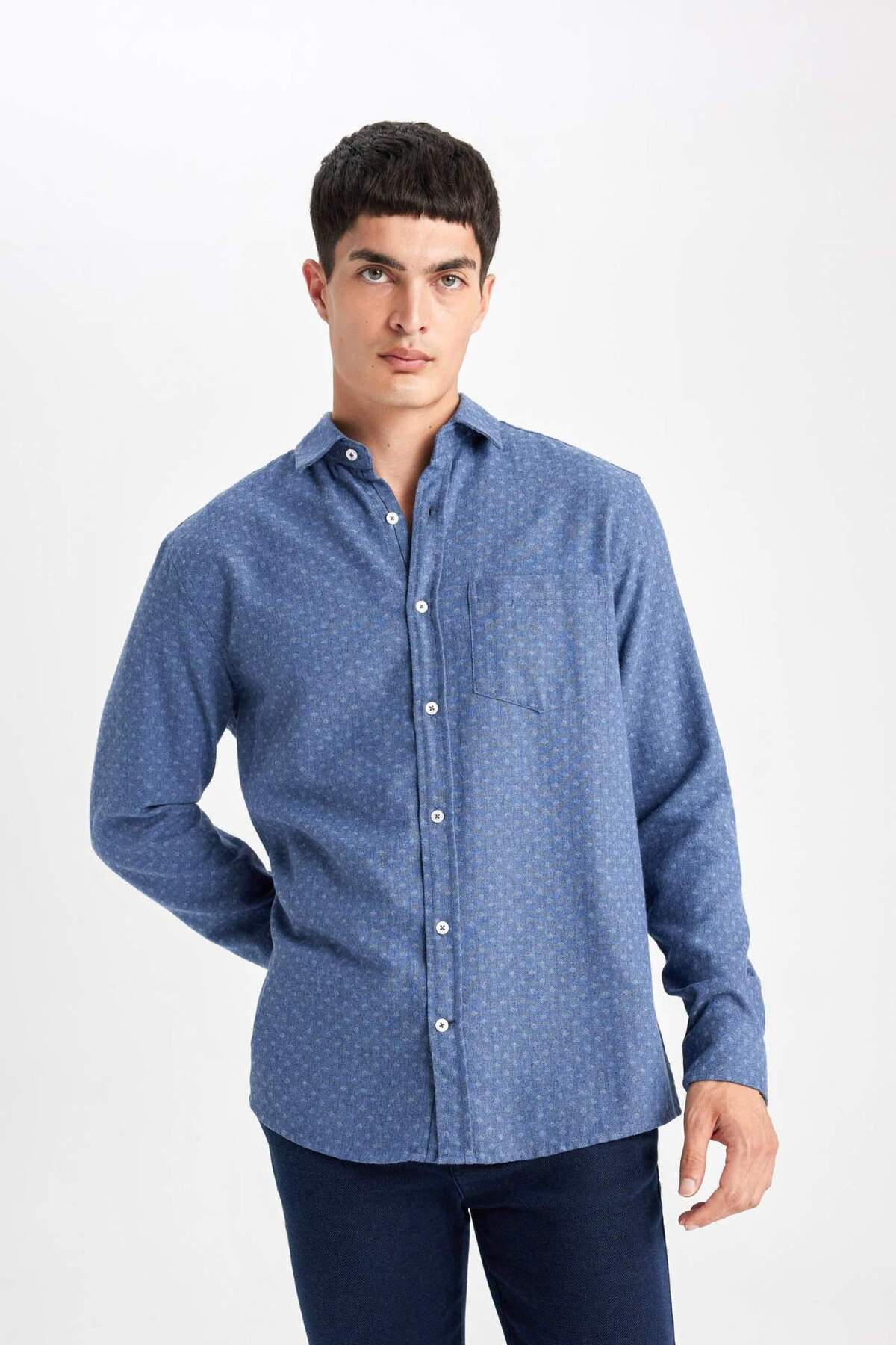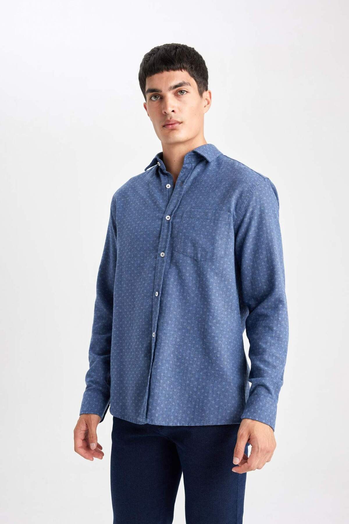خرید اینترنتی پیراهن آستین بلند جیبی با تناسب رگولار B1872AX23AU برند دفاکتو Defacto اورجینال از DeFacto نمایندگی ترکیه
