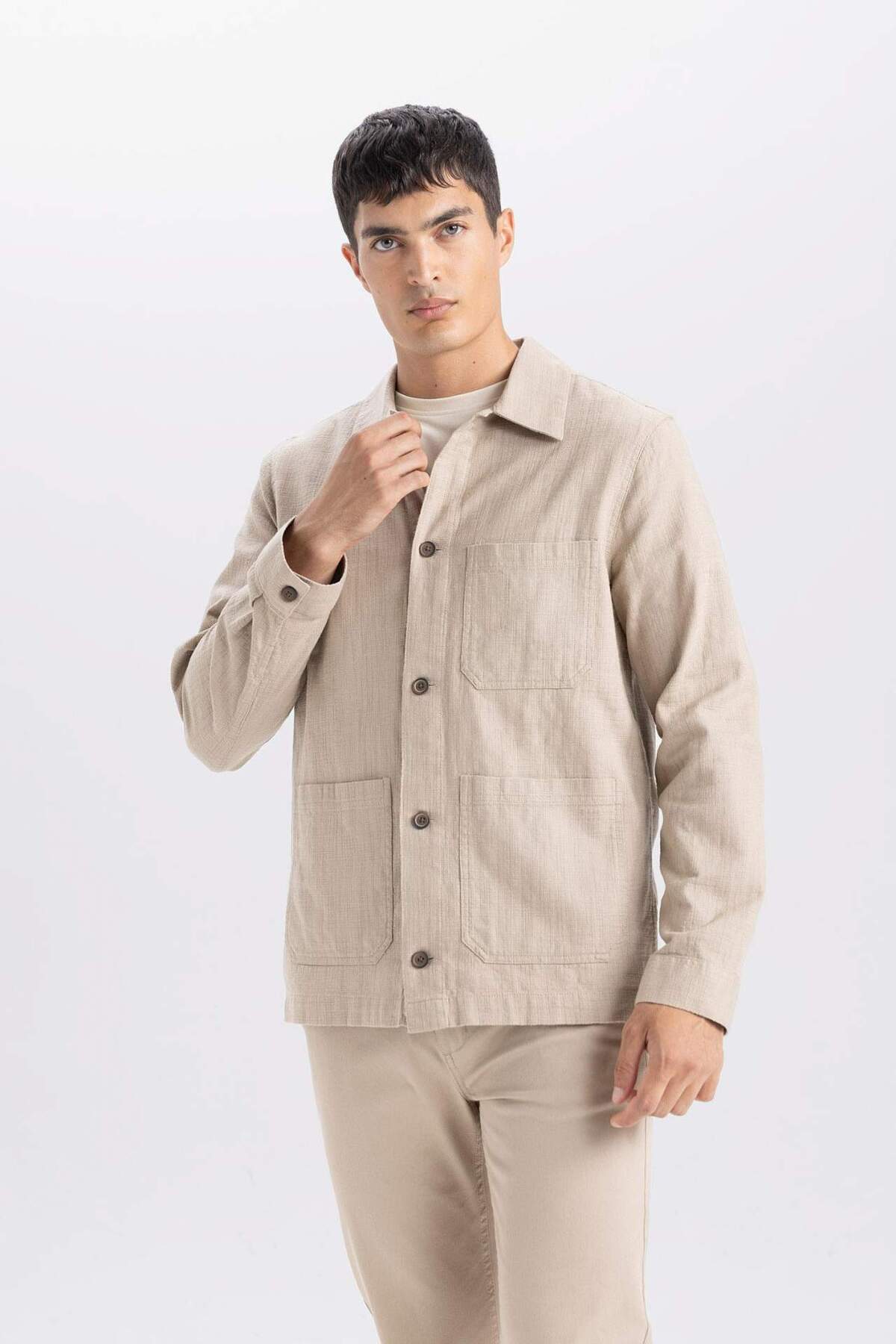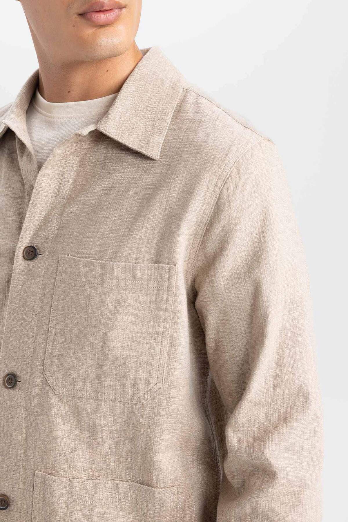 خرید اینترنتی پیراهن جیبی نخی با یقه پولو منظم B4131AX24SP برند دفاکتو Defacto اورجینال از DeFacto نمایندگی ترکیه