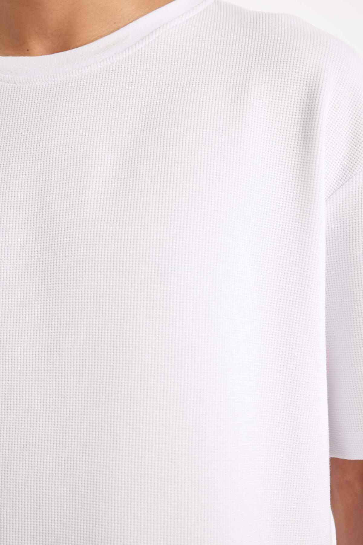 خرید اینترنتی تی شرت یقه کوتاه باکسی فیت باکسی با آستین کوتاه ساده وافل سفید B4443AX25SP برند دفاکتو Defacto اورجینال از DeFacto نمایندگی ترکیه