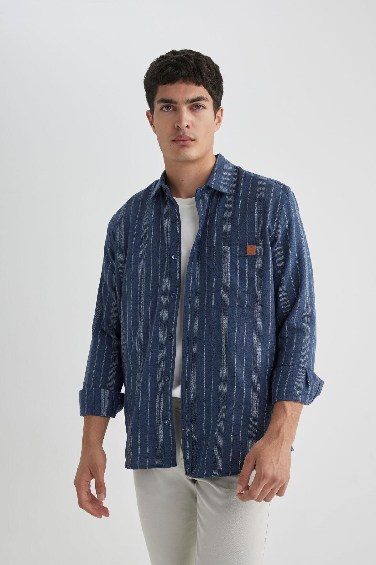 خرید اینترنتی پیراهن آستین بلند راه راه جیبی منظم B5277ax23wn برند دفاکتو Defacto اورجینال از DeFacto نمایندگی ترکیه