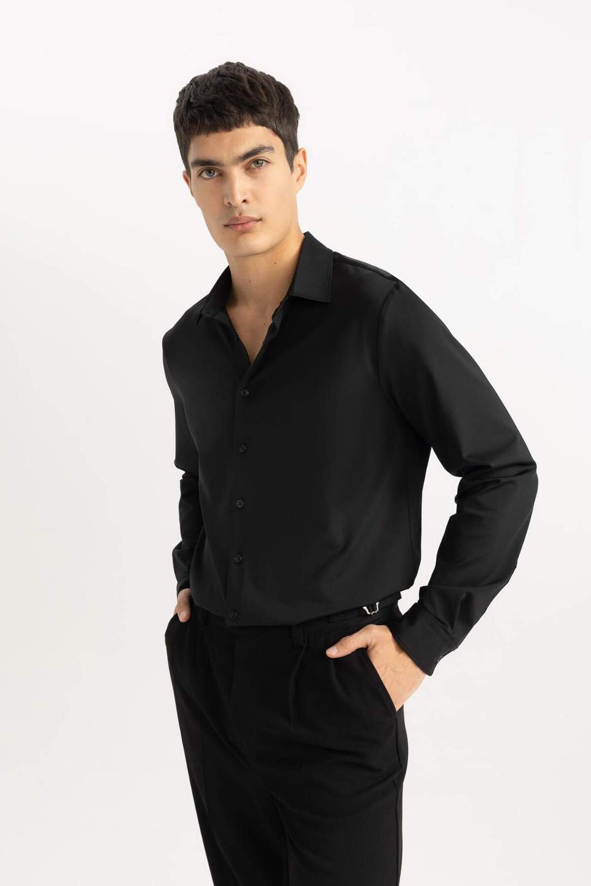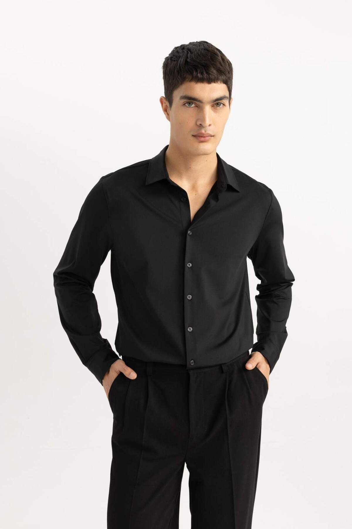 خرید اینترنتی Slim Fit Slim Cut یقه پولو پارچه انعطاف پذیر ساده پیراهن آستین بلند ساده B6491AX24SP برند دفاکتو Defacto اورجینال از DeFacto نمایندگی ترکیه
