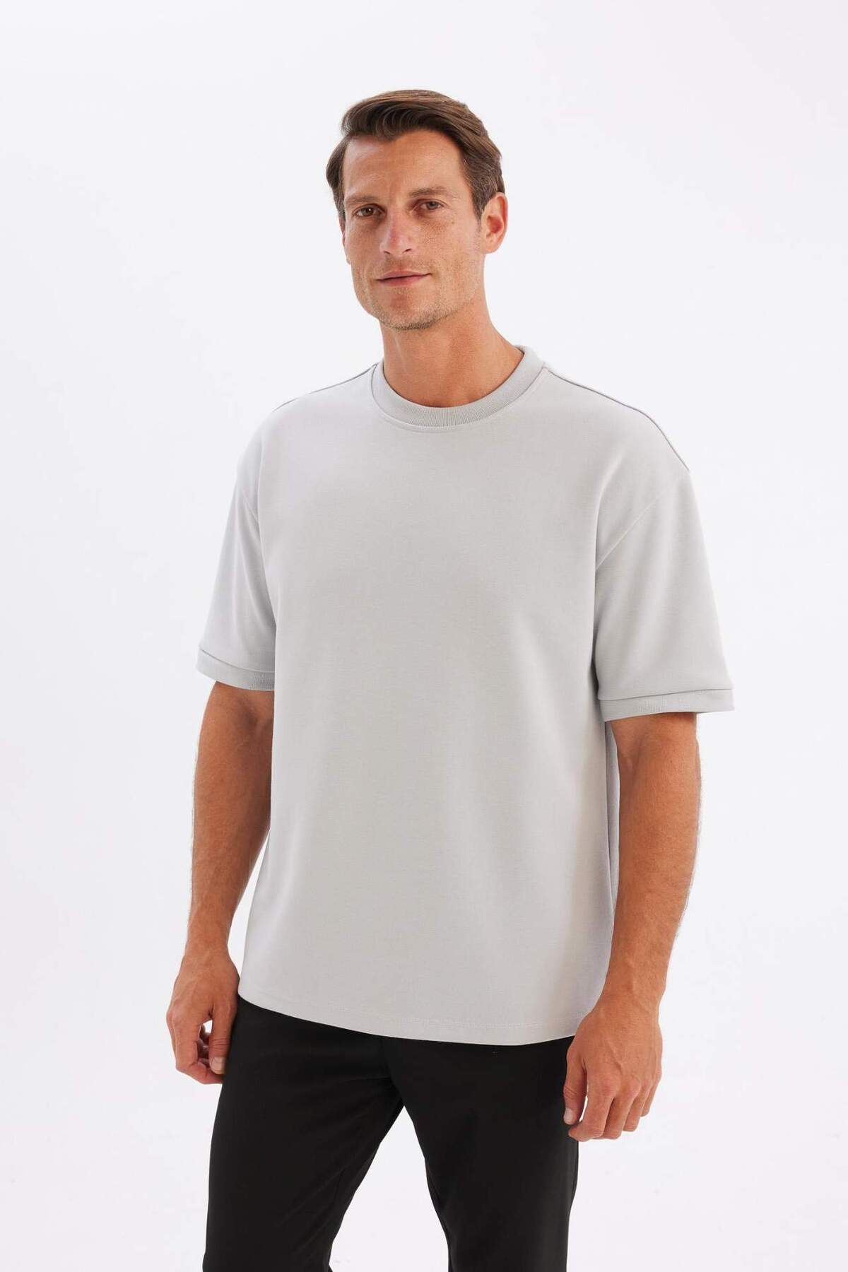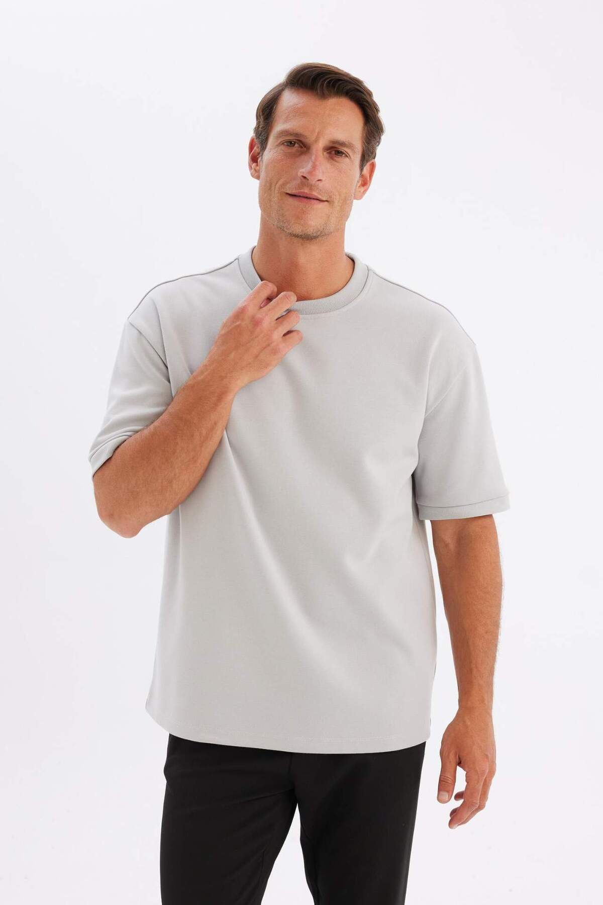 خرید اینترنتی تی شرت پارچه ای سنگین آستین کوتاه ساده با یقه مدل پهن سایز بزرگ B6494AX24AU برند دفاکتو Defacto اورجینال از DeFacto نمایندگی ترکیه