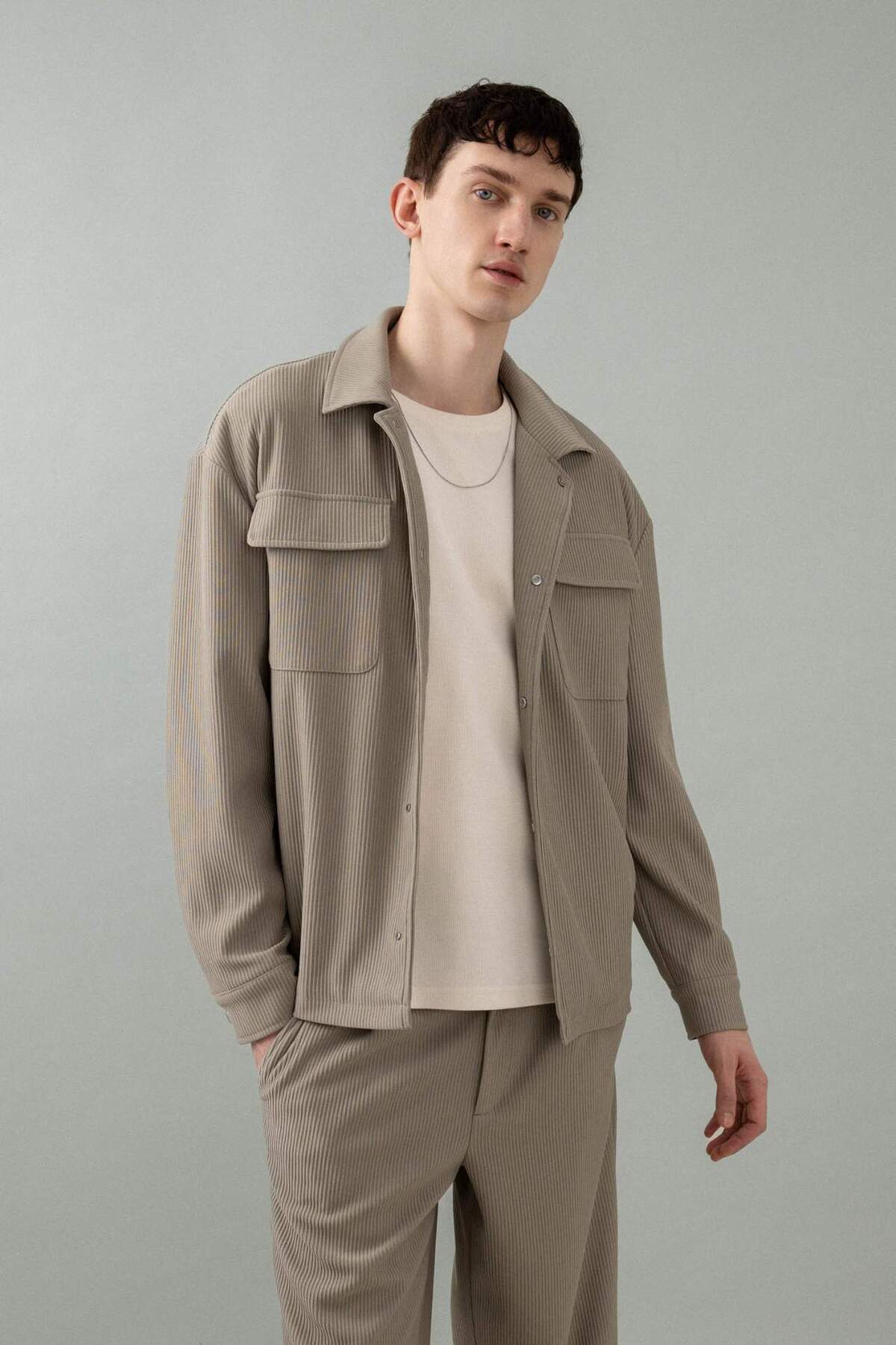 ژاکت پلیسه دار یقه پیراهن Relax Fit که با برش راحت و طراحی شیک خود متمایز است، ظاهری سبک ارائه می دهد.