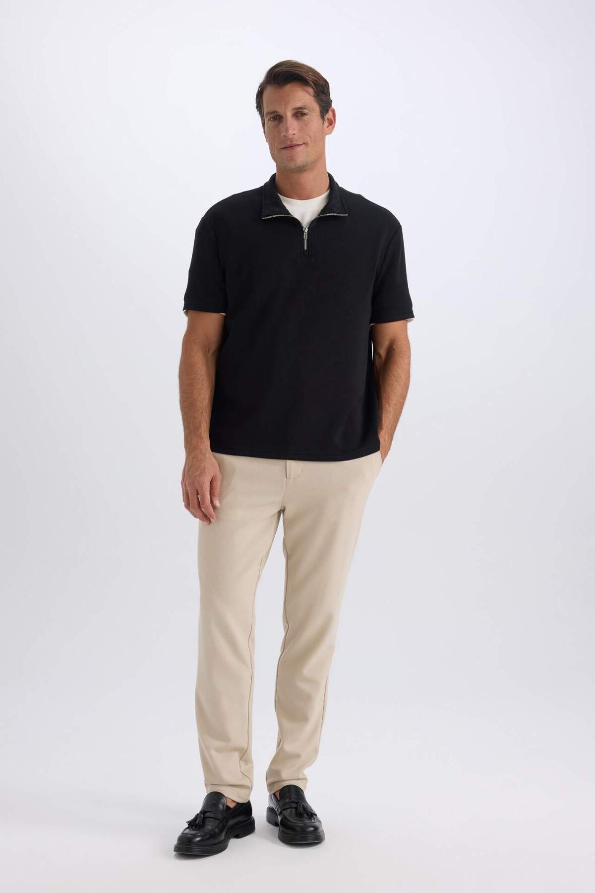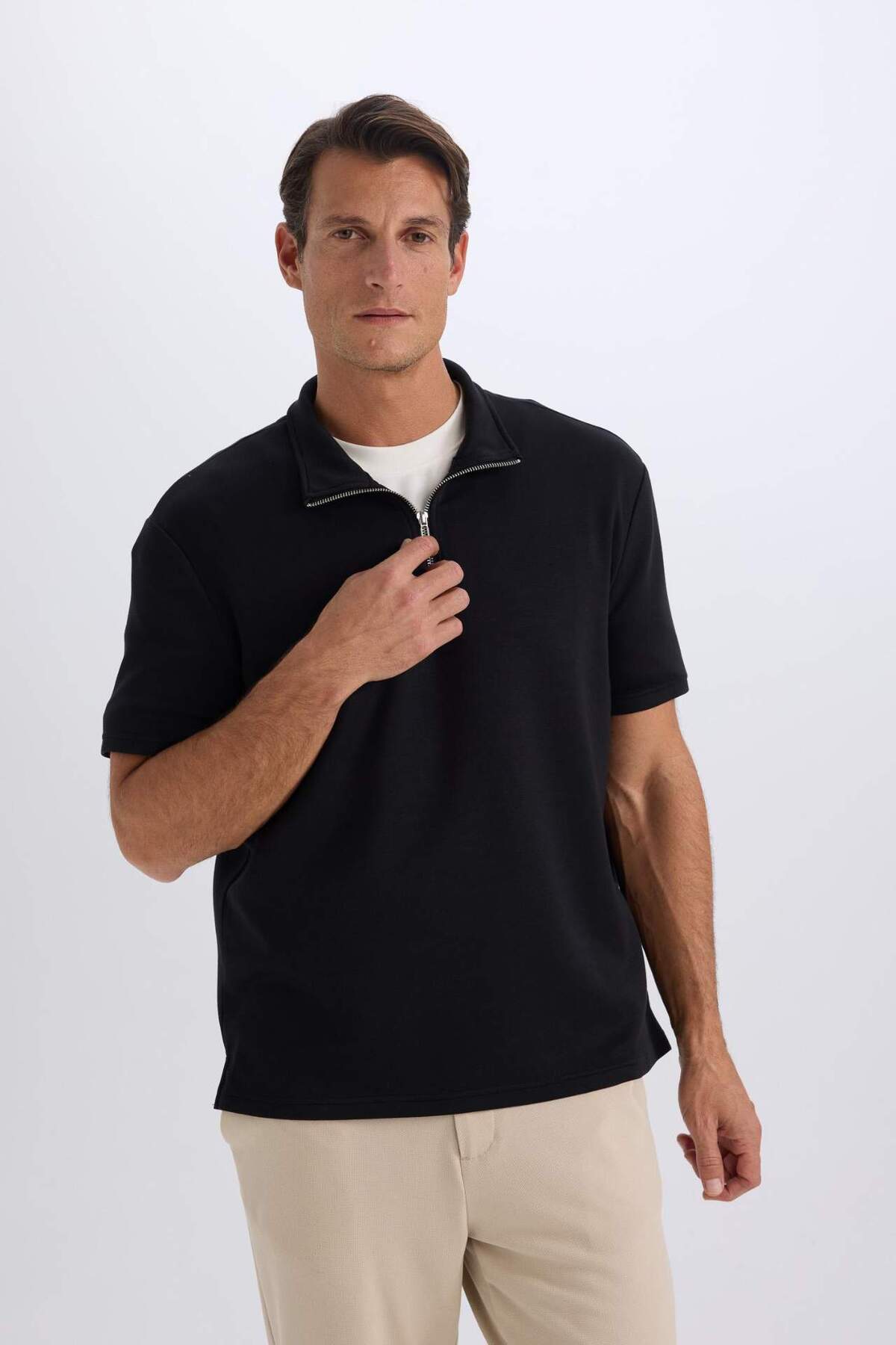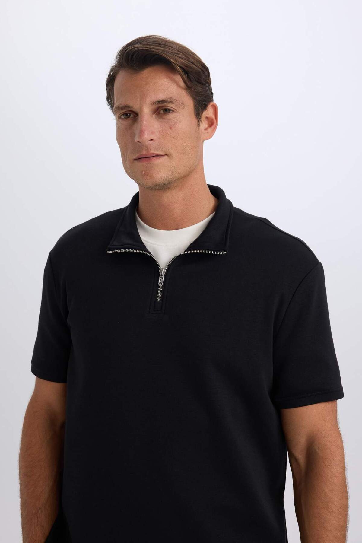 خرید اینترنتی تی شرت آستین کوتاه پارچه ای نیمه زیپ یقه بلند با تناسب رگولار B6502AX24SP برند دفاکتو Defacto اورجینال از DeFacto نمایندگی ترکیه