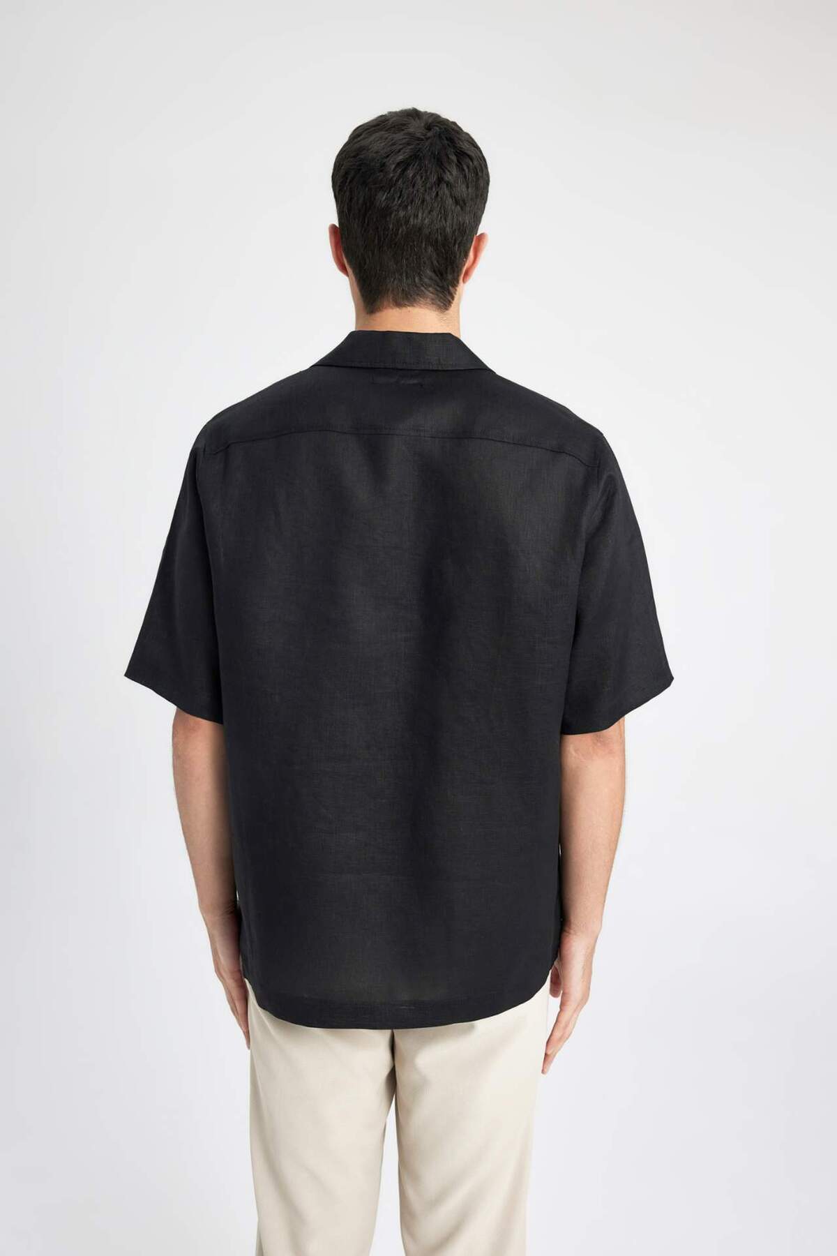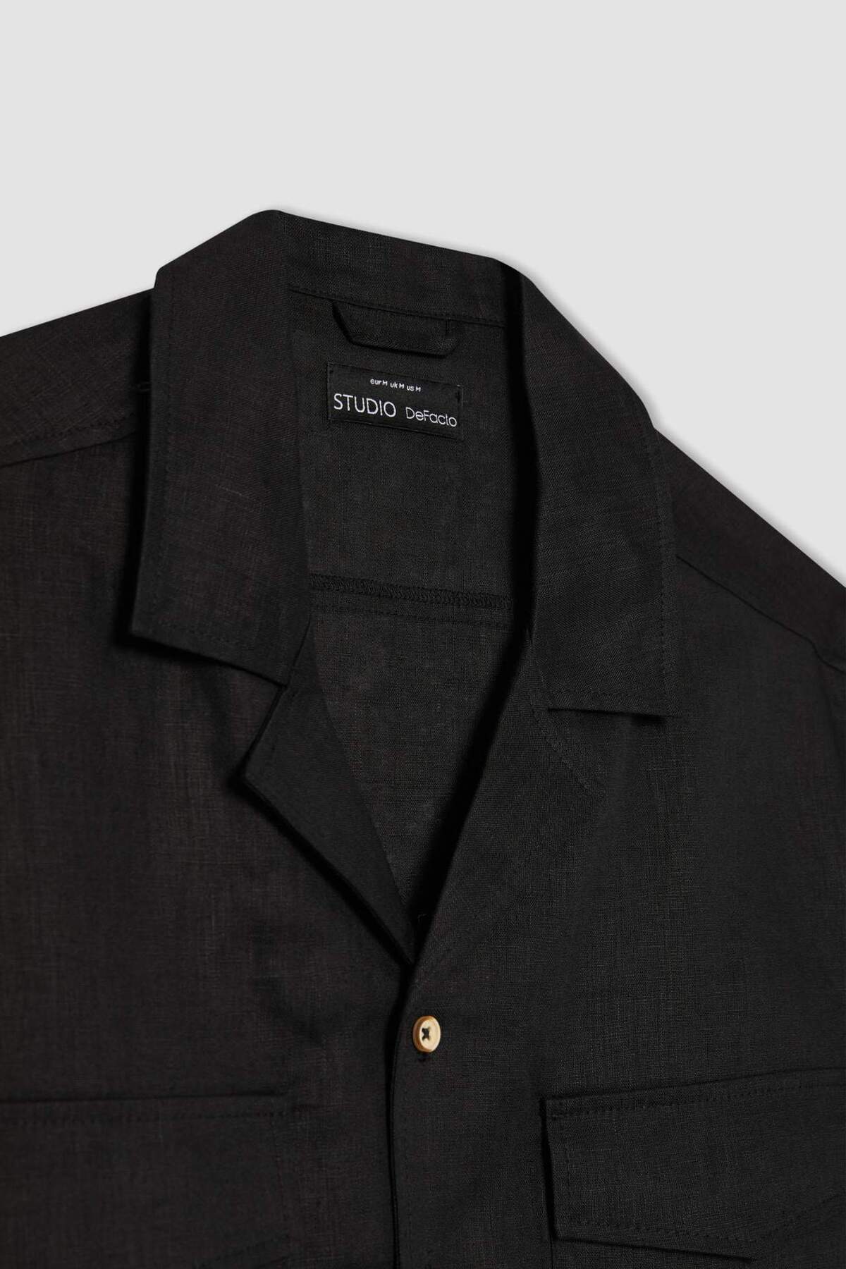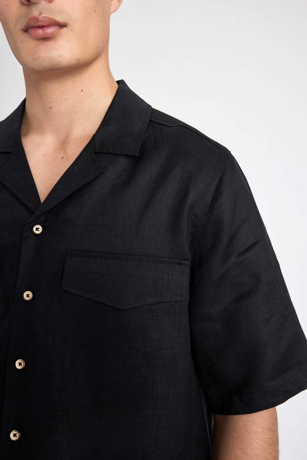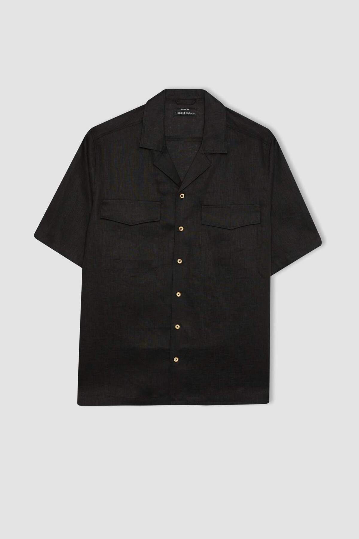 خرید اینترنتی پیراهن آستین کوتاه مشکی 100% کتانی با یقه پولو بیسیک ساده B6687AX24SP برند دفاکتو Defacto اورجینال از DeFacto نمایندگی ترکیه