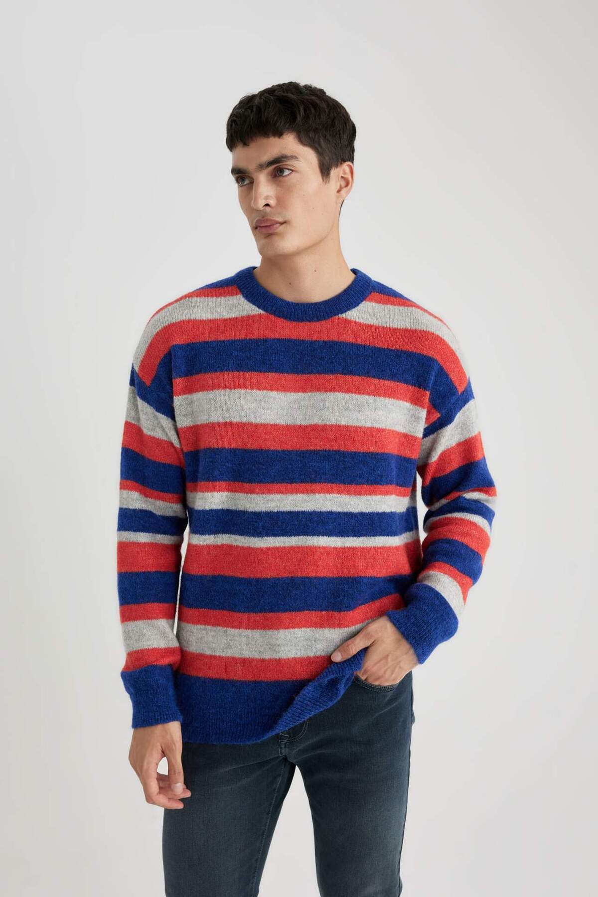 خرید اینترنتی ژاکت بافتنی یقه راه راه استاندارد B8775AX23CW برند دفاکتو Defacto اورجینال از DeFacto نمایندگی ترکیه