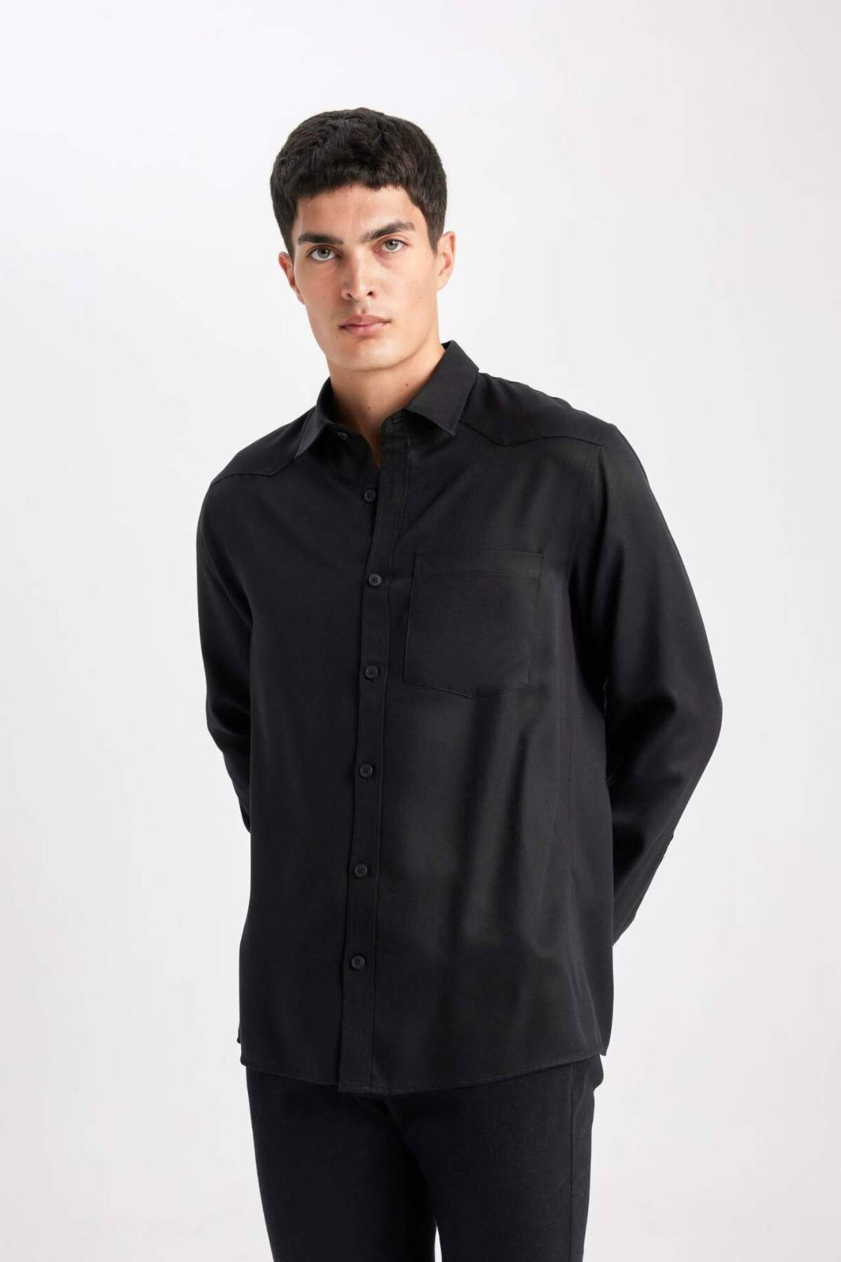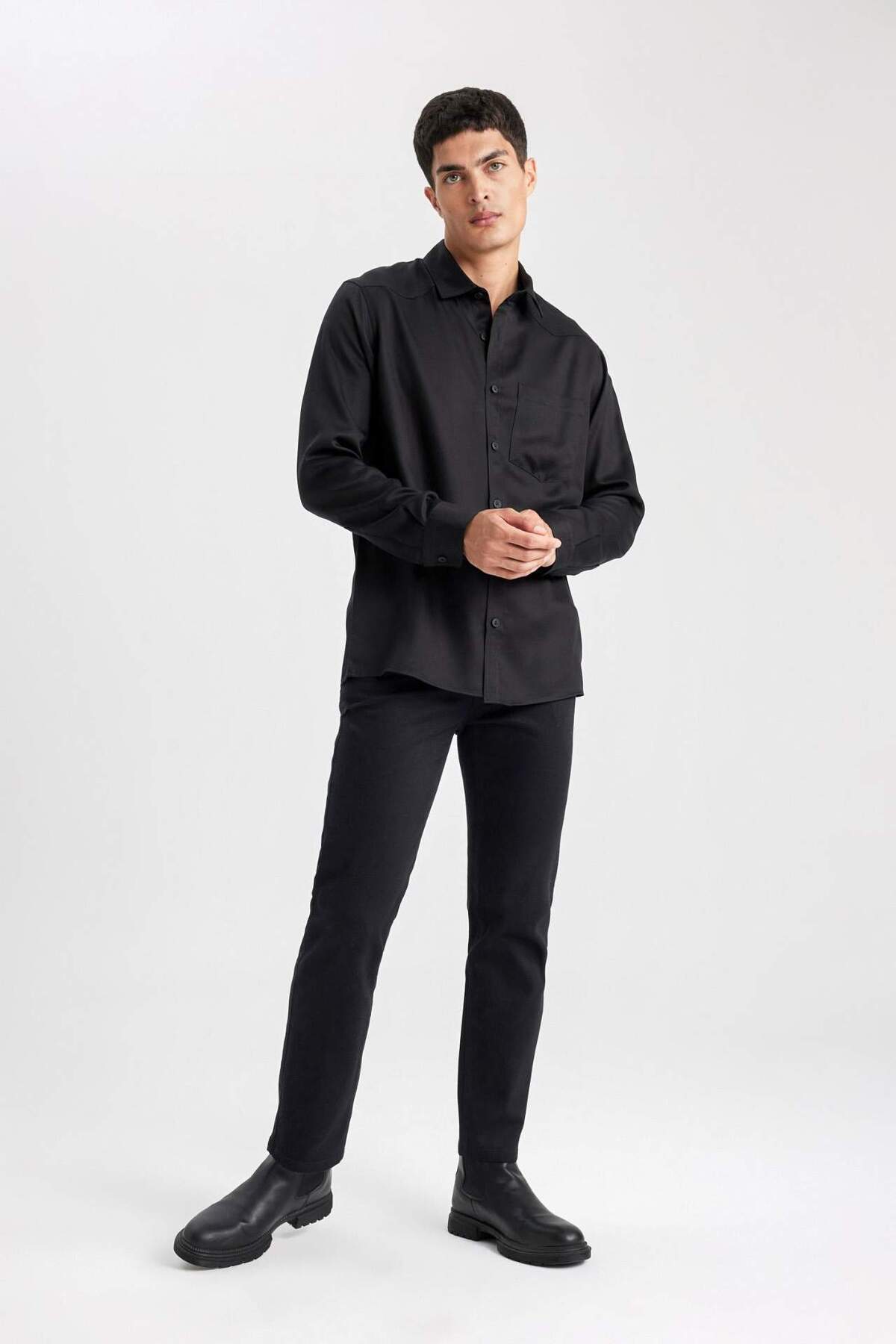 خرید اینترنتی پیراهن مشکی آستین بلند منظم B8951AX23WN برند دفاکتو Defacto اورجینال از DeFacto نمایندگی ترکیه