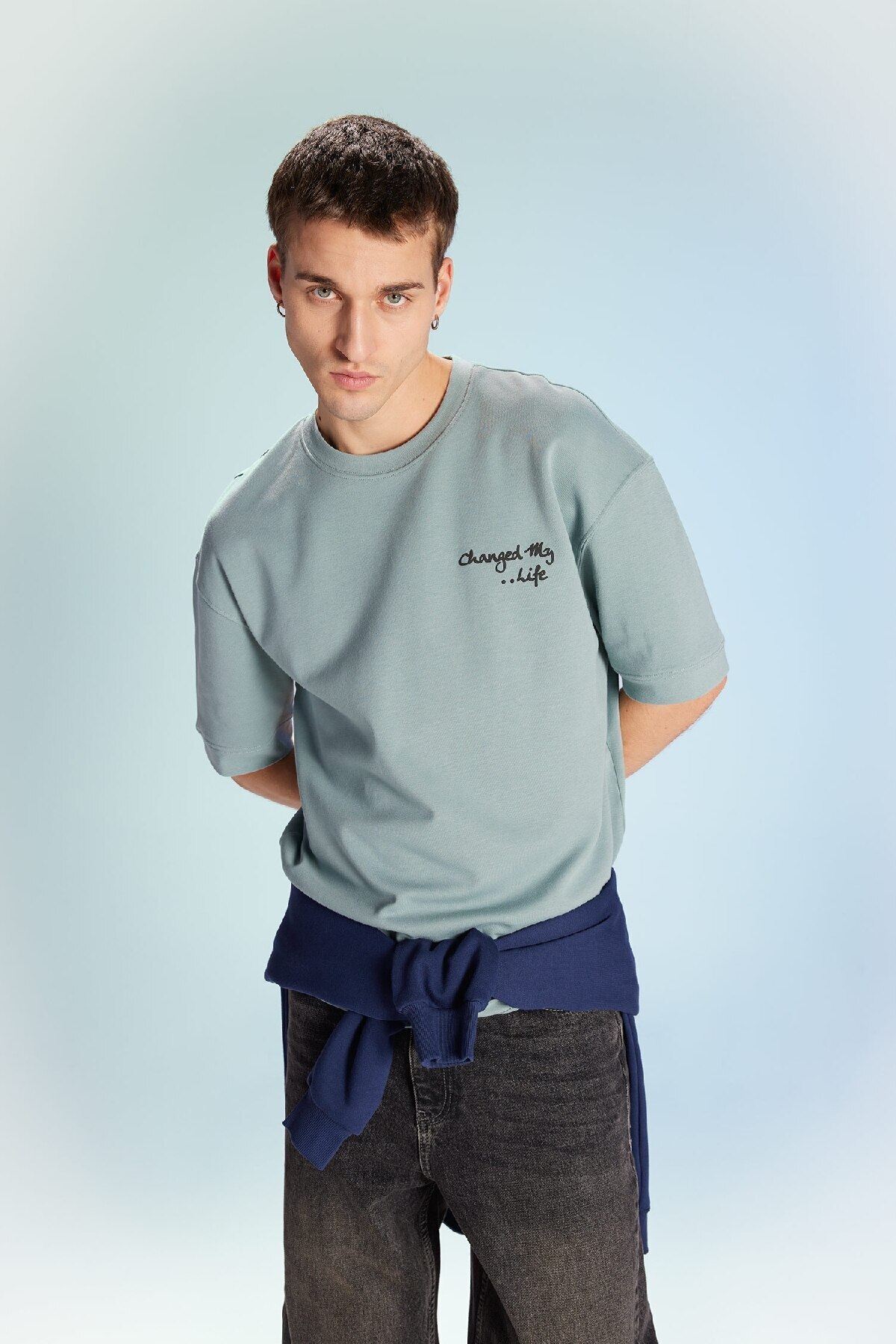 خرید اینترنتی تی شرت پارچه ای سنگین آستین کوتاه چاپ شده با یقه شل و گشاد B9674ax23wn برند دفاکتو Defacto اورجینال از DeFacto نمایندگی ترکیه