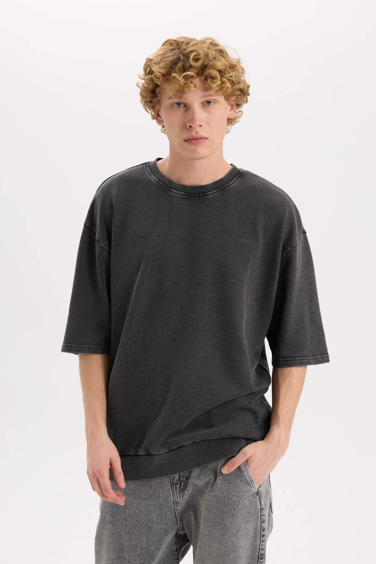 خرید اینترنتی تی شرت آستین کوتاه یقه گشاد با جلوه محو شده C0709AX24SP برند دفاکتو Defacto اورجینال از DeFacto نمایندگی ترکیه