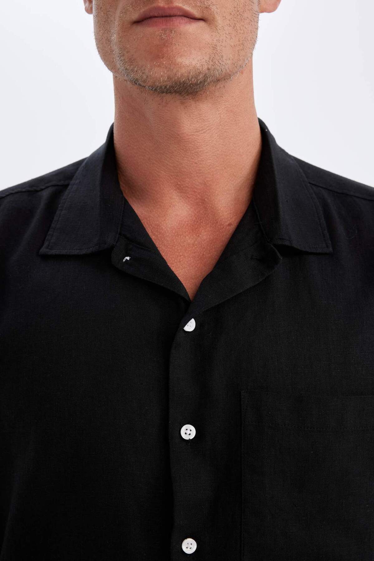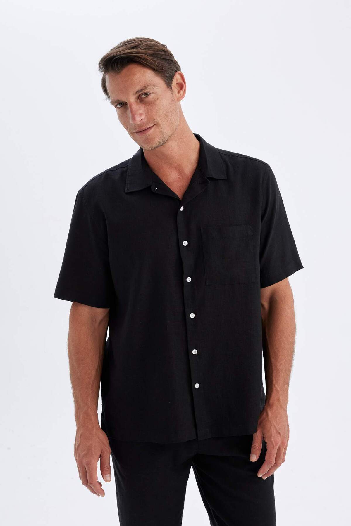 خرید اینترنتی پیراهن آستین کوتاه مشکی آستین کوتاه کتانی یقه پولو تابستانی Relax Fit C1110AX24SM برند دفاکتو Defacto اورجینال از DeFacto نمایندگی ترکیه
