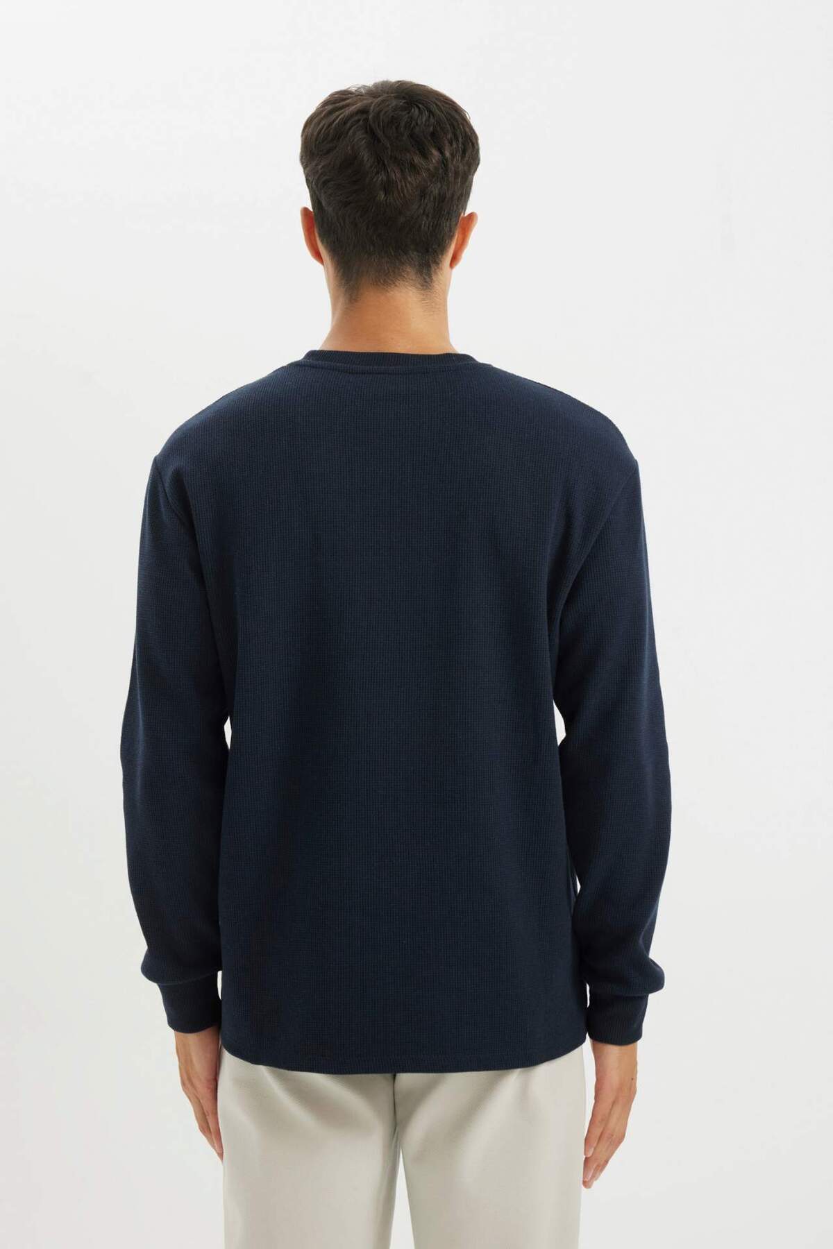 خرید اینترنتی تی شرت آستین بلند یقه وافل رگولار C1882AX24AU برند دفاکتو Defacto اورجینال از DeFacto نمایندگی ترکیه