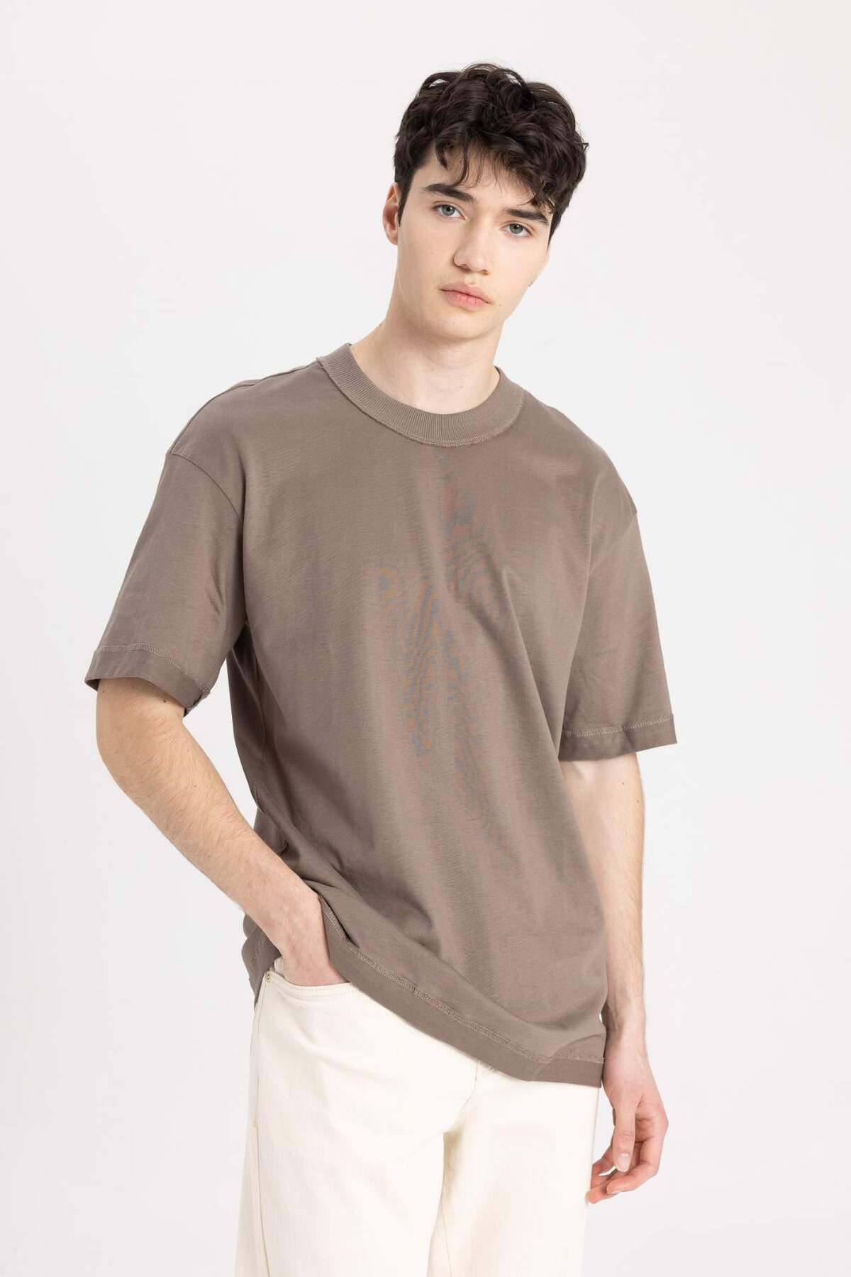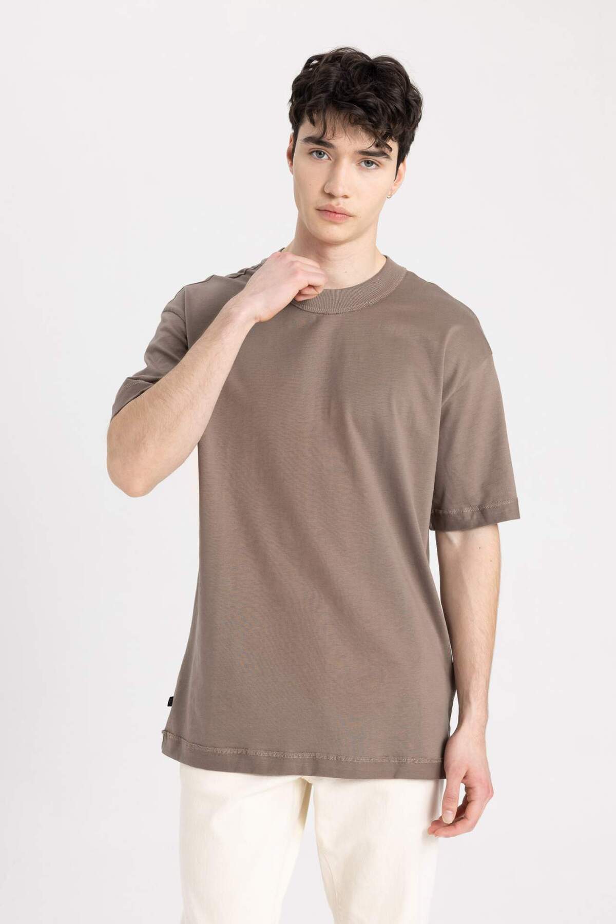 خرید اینترنتی تی شرت آستین کوتاه ساده با یقه باکسی Fit C2562AX24SM برند دفاکتو Defacto اورجینال از DeFacto نمایندگی ترکیه