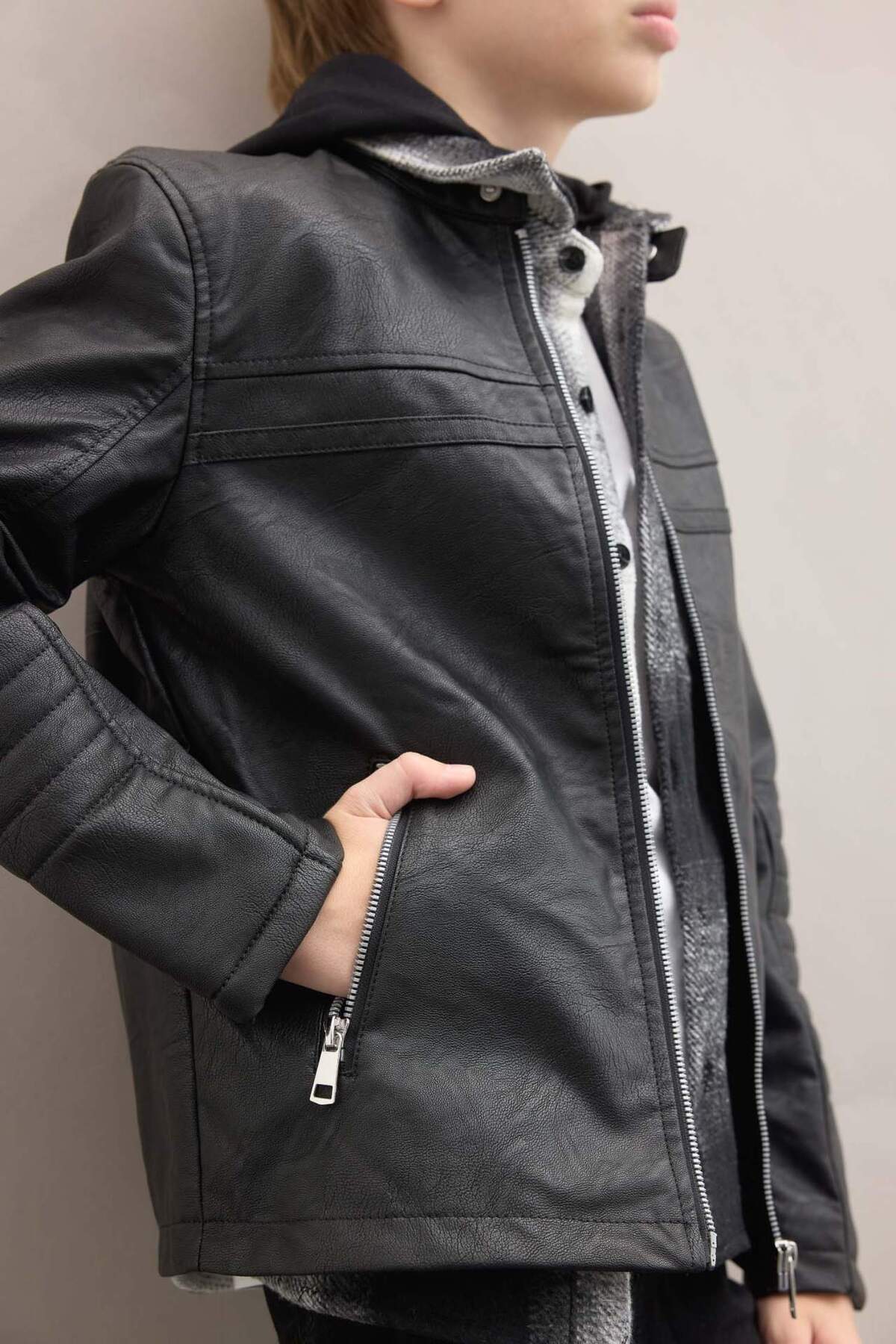 کاپشن چرمی پسرانه دفاکتو مدل 25K801004221_D801007 C4320A8/BK27