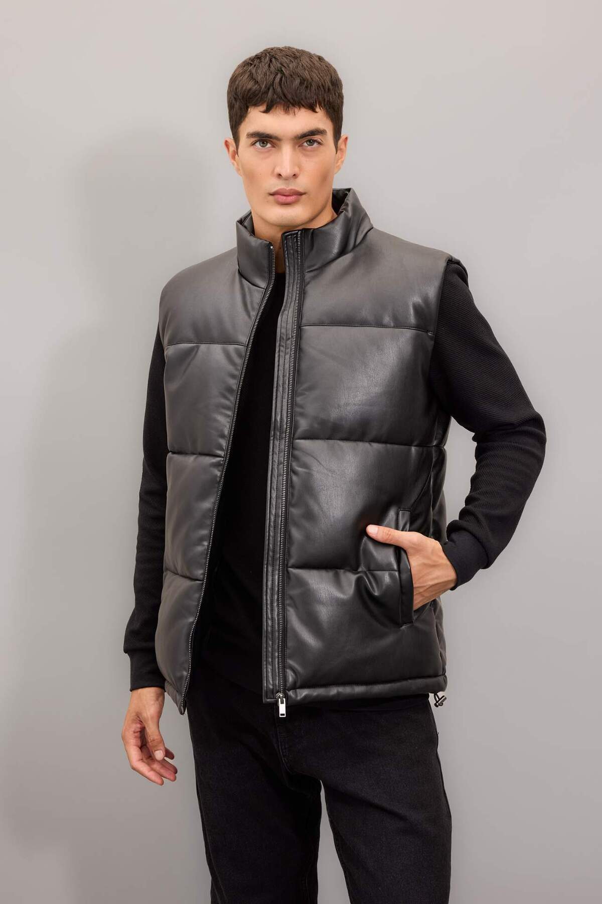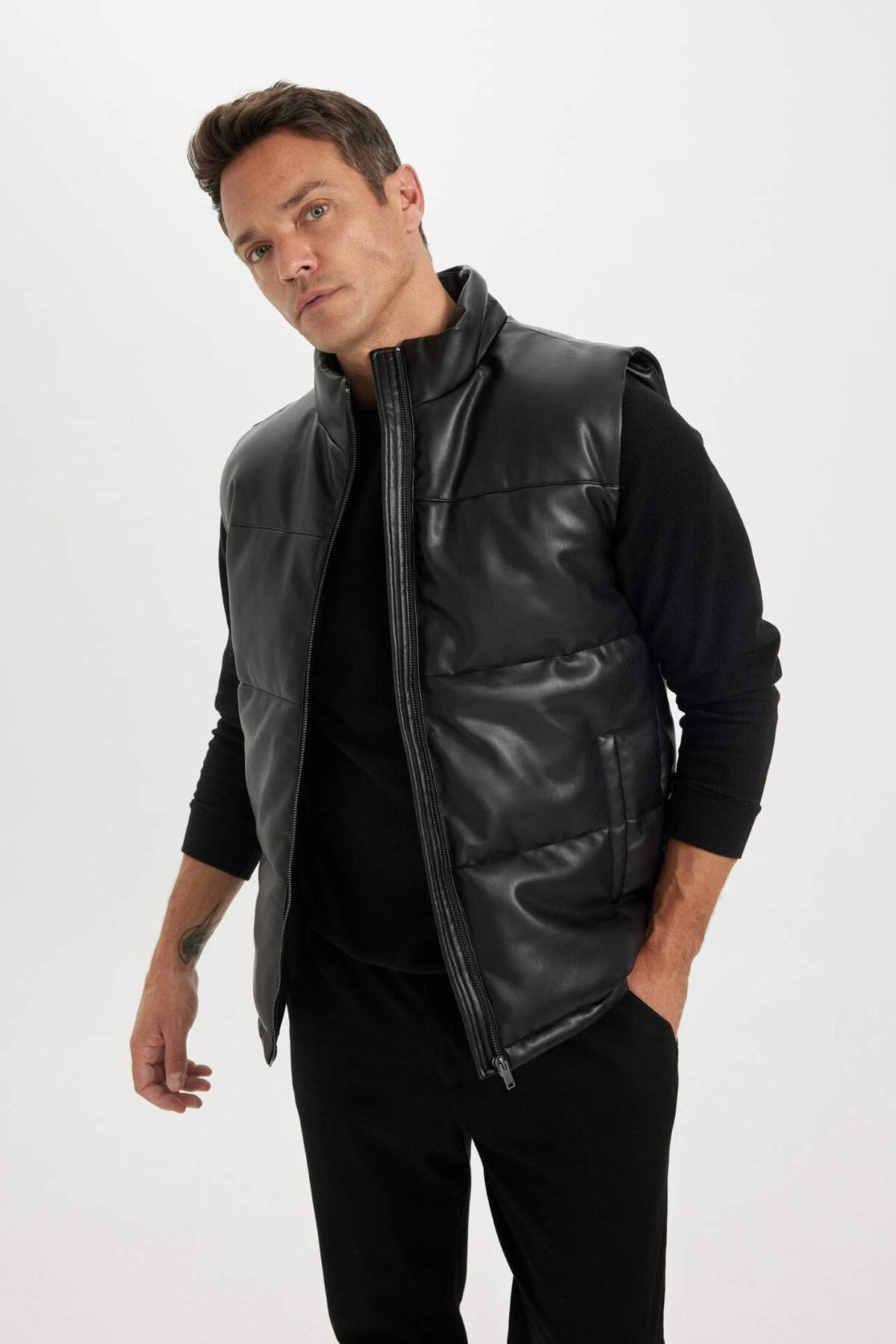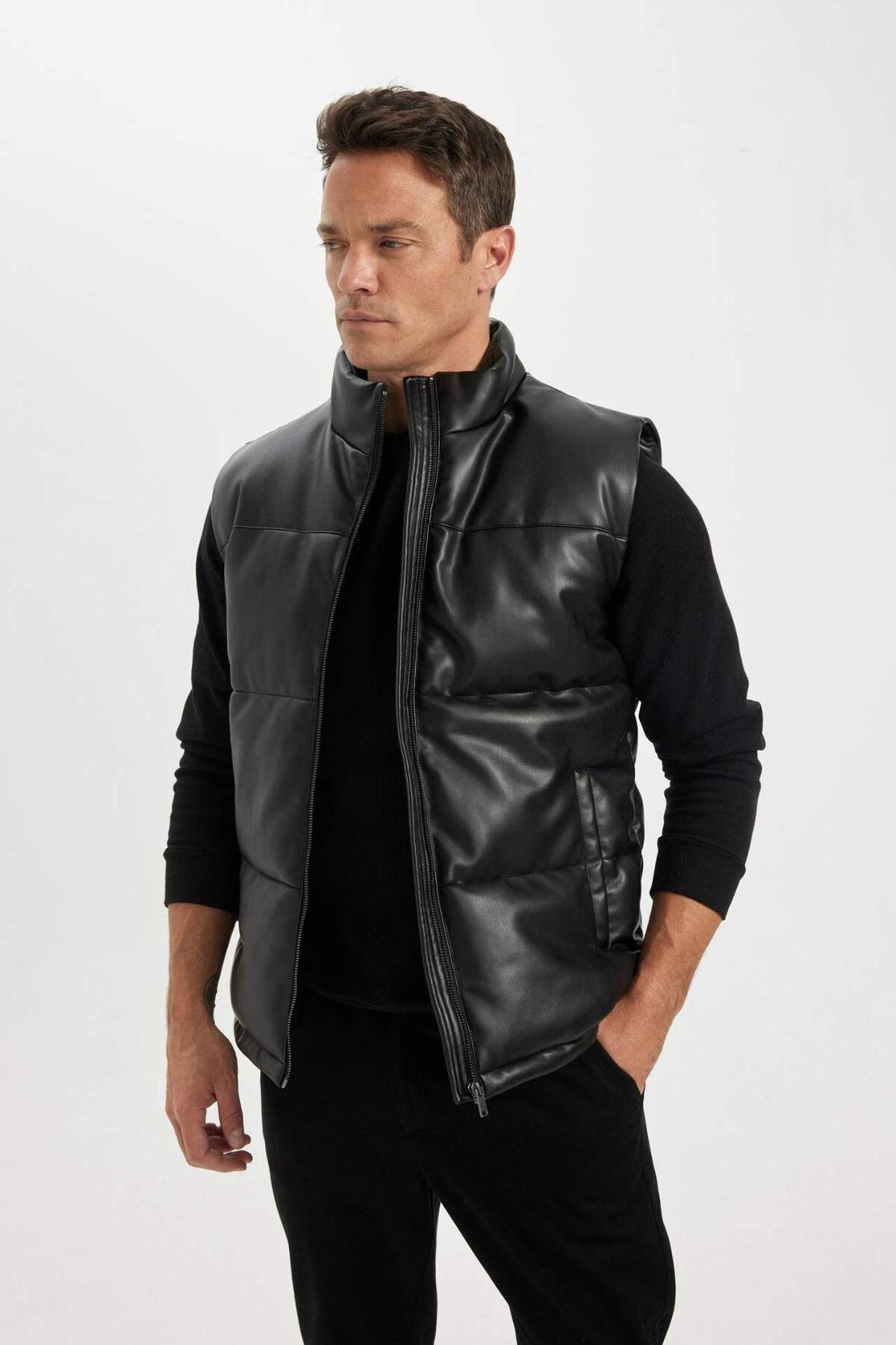 خرید اینترنتی جلیقه چرم مصنوعی پوفر ضد آب با یقه پایه و زیپ C4929AX24WN برند دفاکتو Defacto اورجینال از DeFacto نمایندگی ترکیه