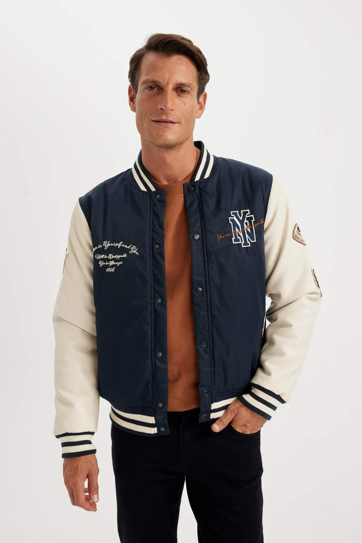 خرید اینترنتی کاپشن بمب افکن ضد آب سایز بزرگ یقه کالج کالج پهن جیب دوزی شده فصلی سبک C5 برند دفاکتو Defacto اورجینال از DeFacto نمایندگی ترکیه
