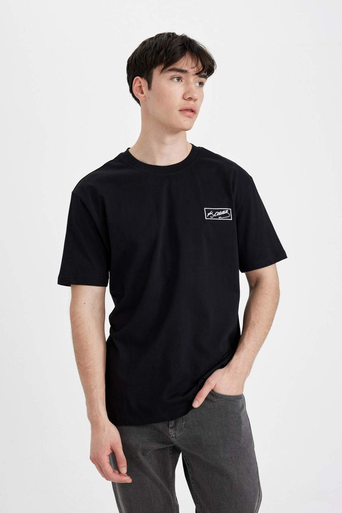 خرید اینترنتی تی شرت آستین کوتاه چاپ شده با یقه آتاتورک منظم C5824AX24HS برند دفاکتو Defacto اورجینال از DeFacto نمایندگی ترکیه