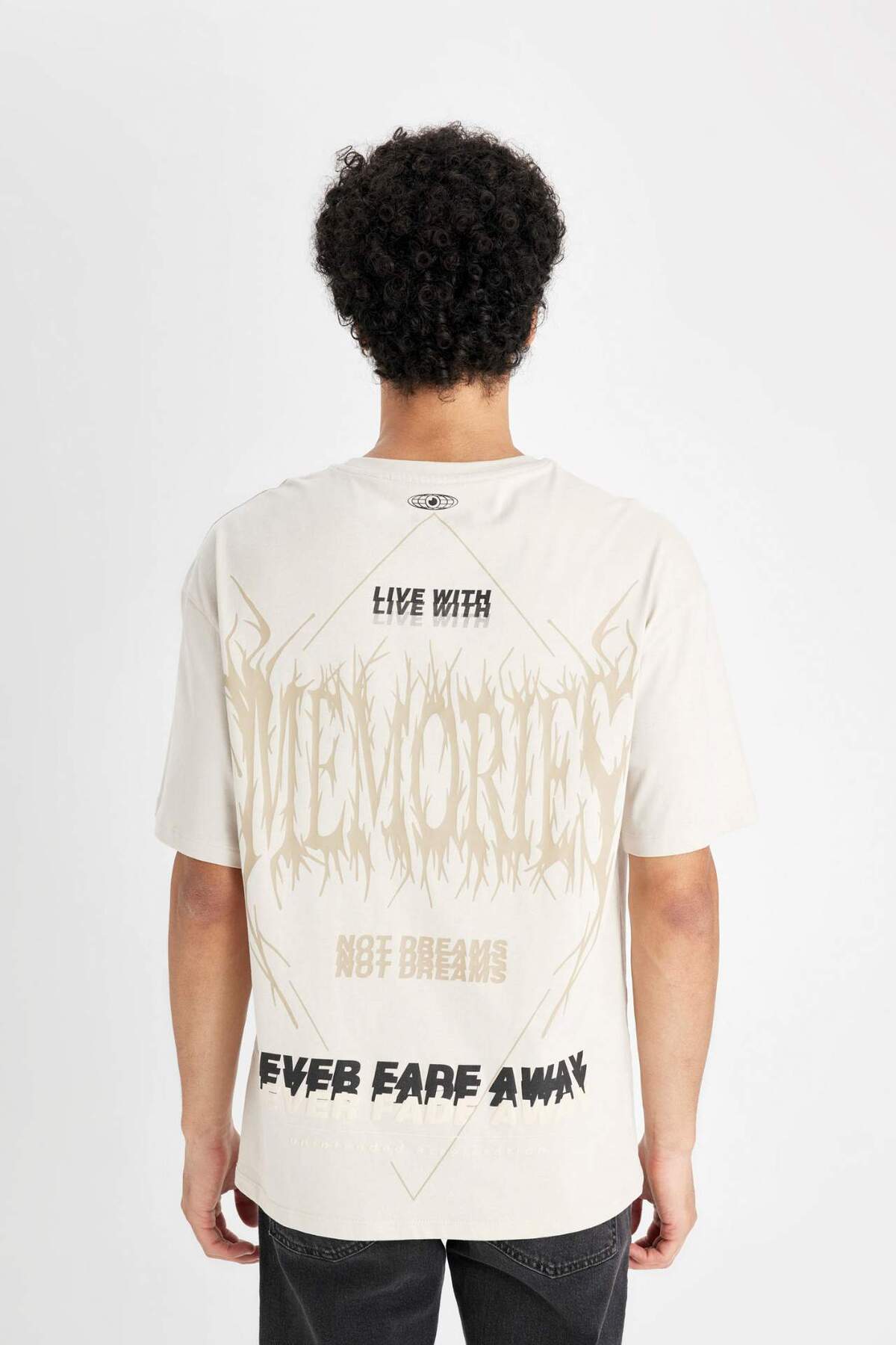 خرید اینترنتی تی شرت آستین کوتاه 100% پنبه ای با تناسب رگولار و برش آستین یقه پشتی چاپ شده با آستین کوتاه C6142AX24AU برند دفاکتو Defacto اورجینال از DeFacto نمایندگی ترکیه