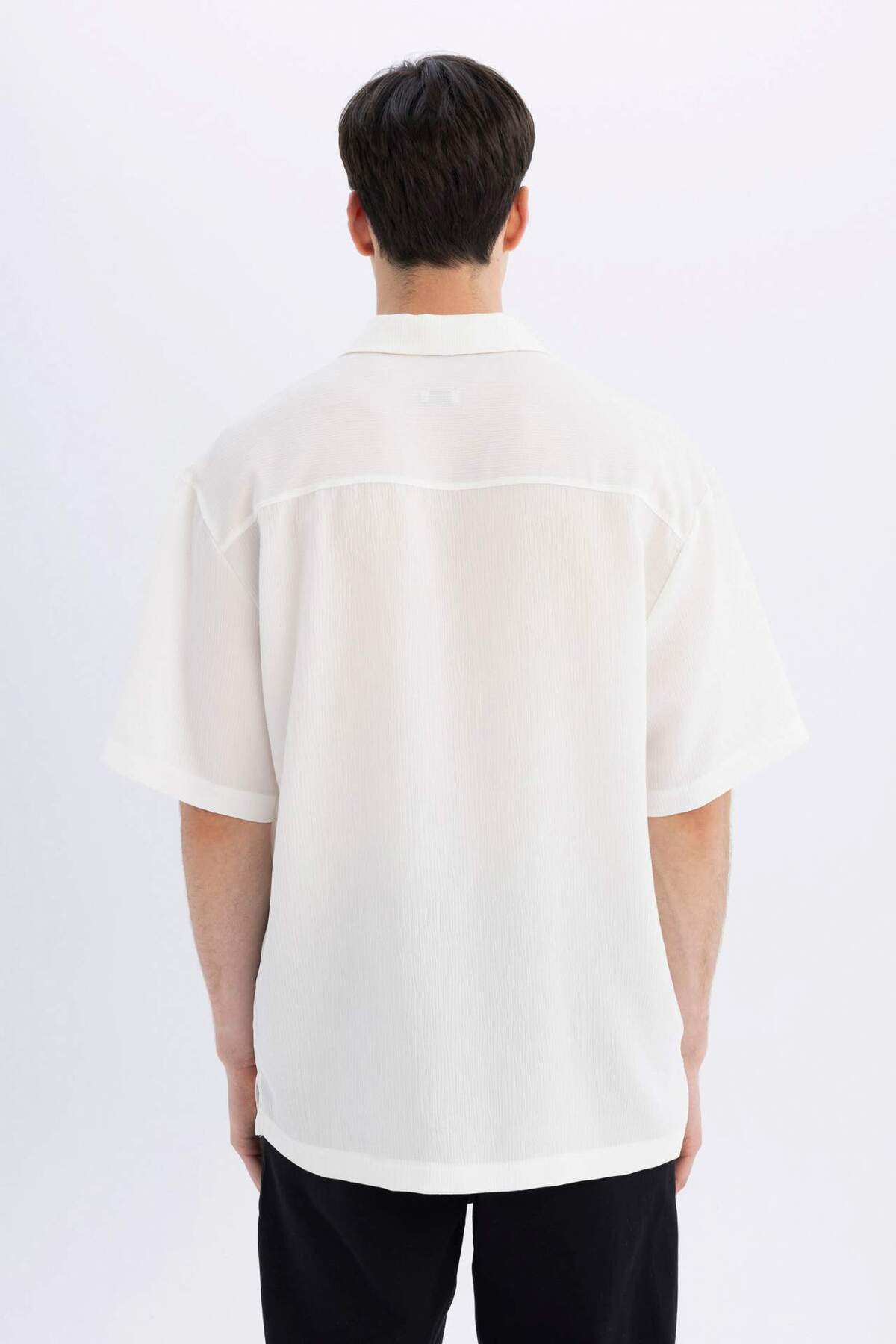 خرید اینترنتی پیراهن سفید آستین کوتاه پارچه ای یقه پولو تابستانی Relax Fit C7398AX24SM برند دفاکتو Defacto اورجینال از DeFacto نمایندگی ترکیه