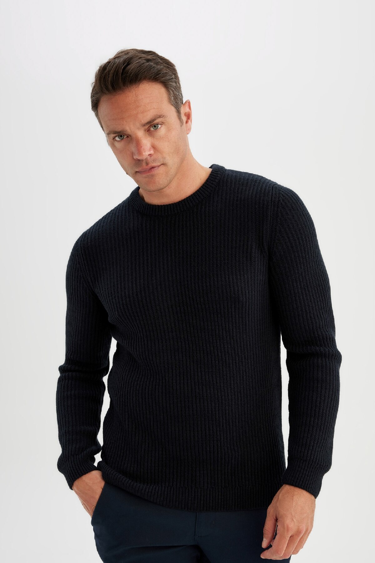 خرید اینترنتی ژاکت بافتنی یقه با بافت استاندارد با تناسب رگولار C8814ax24wn برند دفاکتو Defacto اورجینال از DeFacto نمایندگی ترکیه