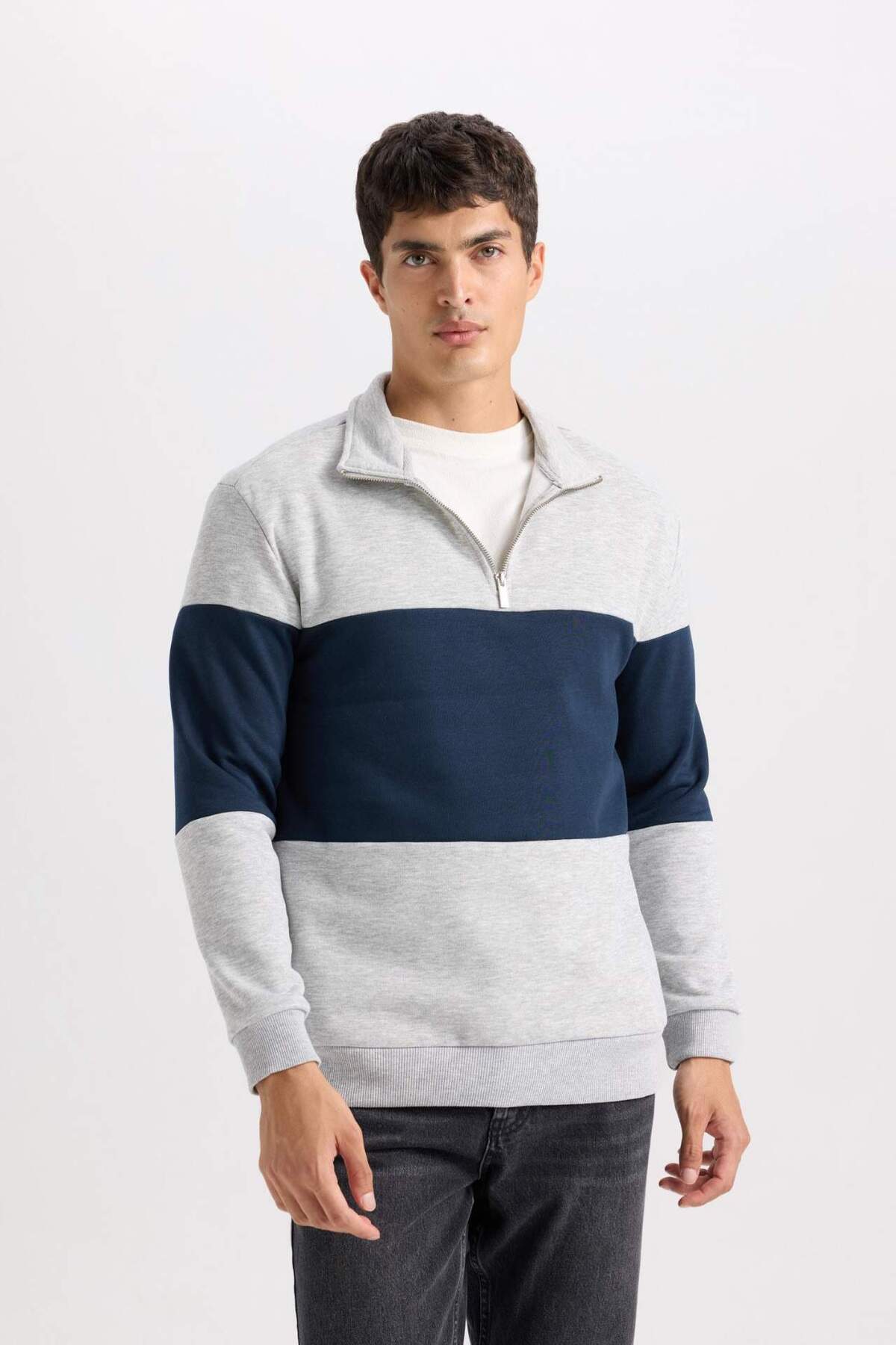 خرید اینترنتی سویشرت ضخیم یقه ای زیپ دار و زیپ دار با تناسب رگولار و غیررسمی D2401AX24AU برند دفاکتو Defacto اورجینال از DeFacto نمایندگی ترکیه