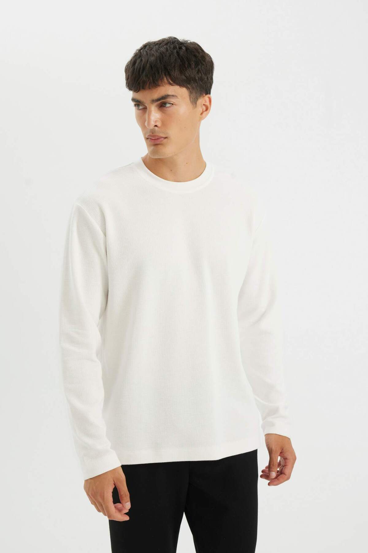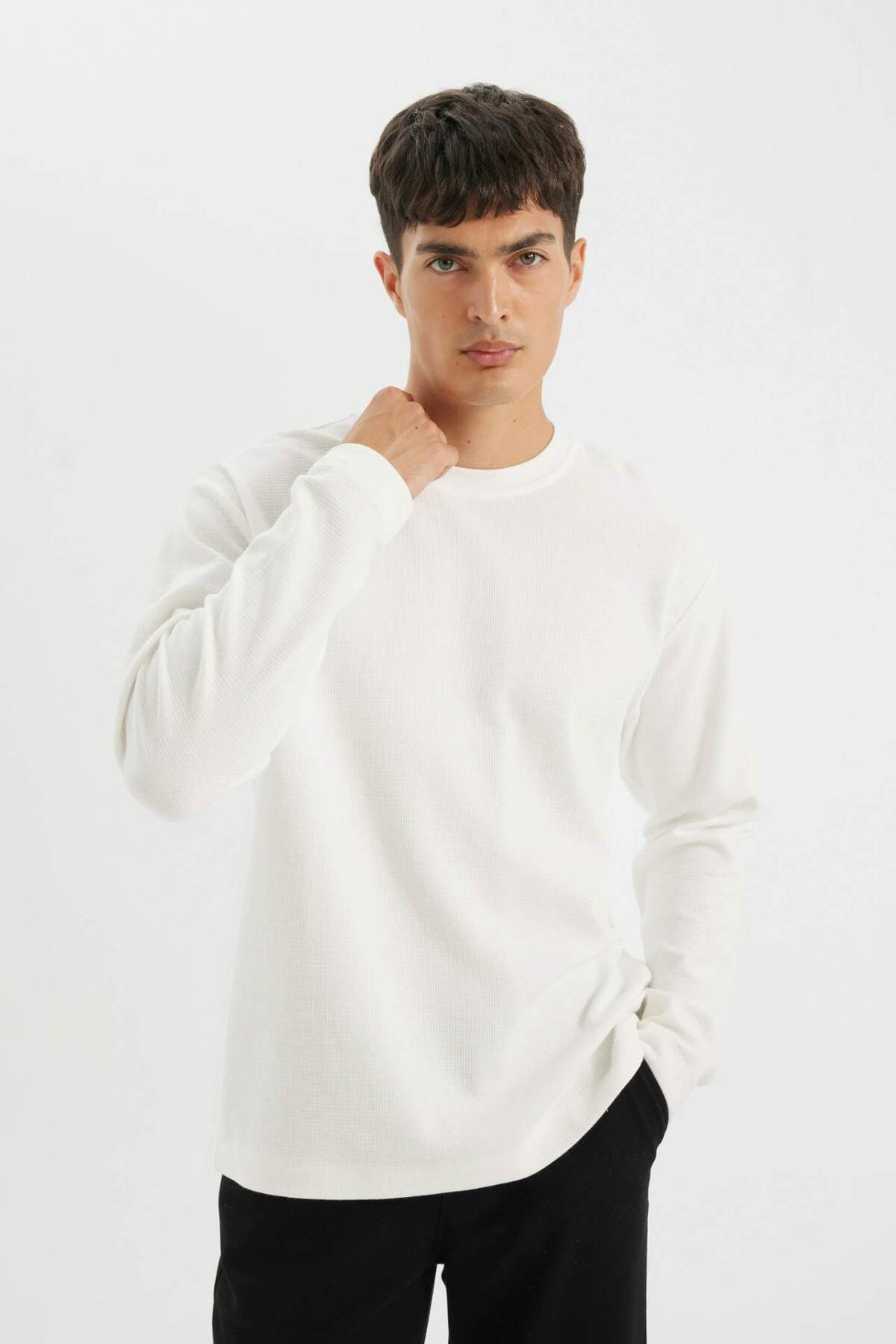 خرید اینترنتی تیشرت آستین بلند ساده و رگولار 100% پنبه ای وافل D2801AX24AU برند دفاکتو Defacto اورجینال از DeFacto نمایندگی ترکیه