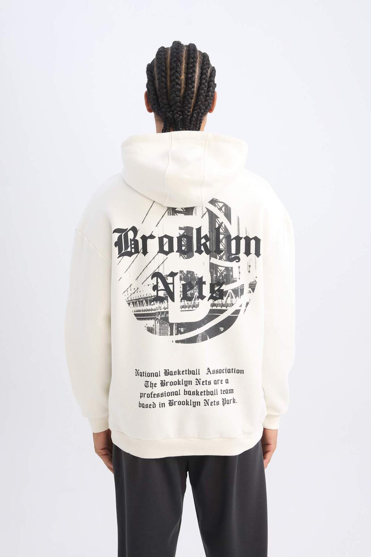 دفاکتو سویشرت DeFactoFit NBA Brooklyn Nets Comfort Fit کژوال فیت کلاهدار پشت ضخیم D3222AX