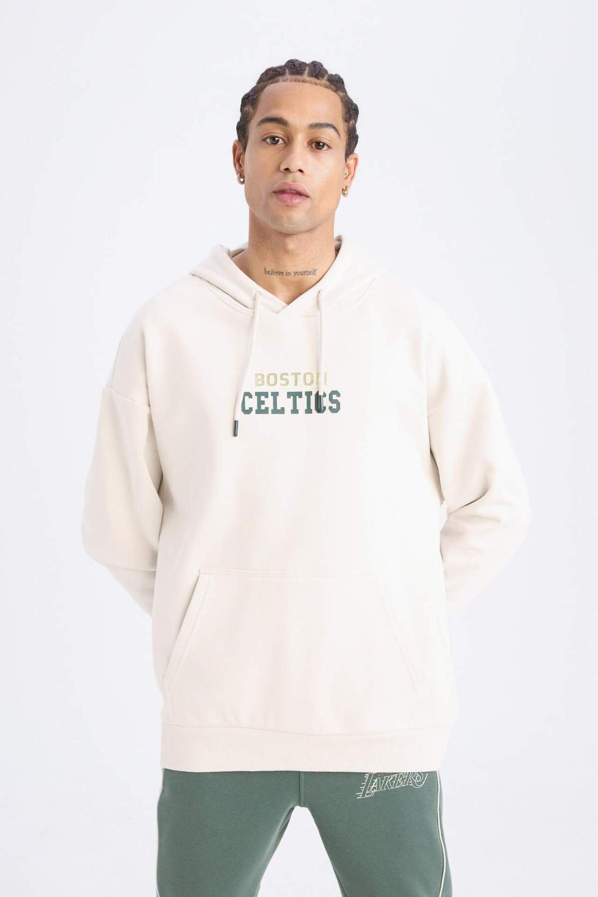خرید اینترنتی سویشرت ضخیم چاپ شده پشتی کلاهدار با قالب گسترده DeFactoFit NBA Boston Celtics D3242AX24 برند دفاکتو Defacto اورجینال از DeFacto نمایندگی ترکیه