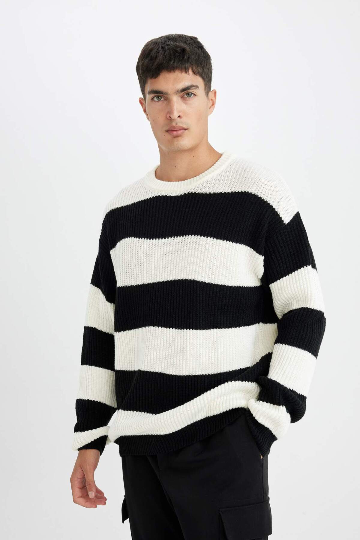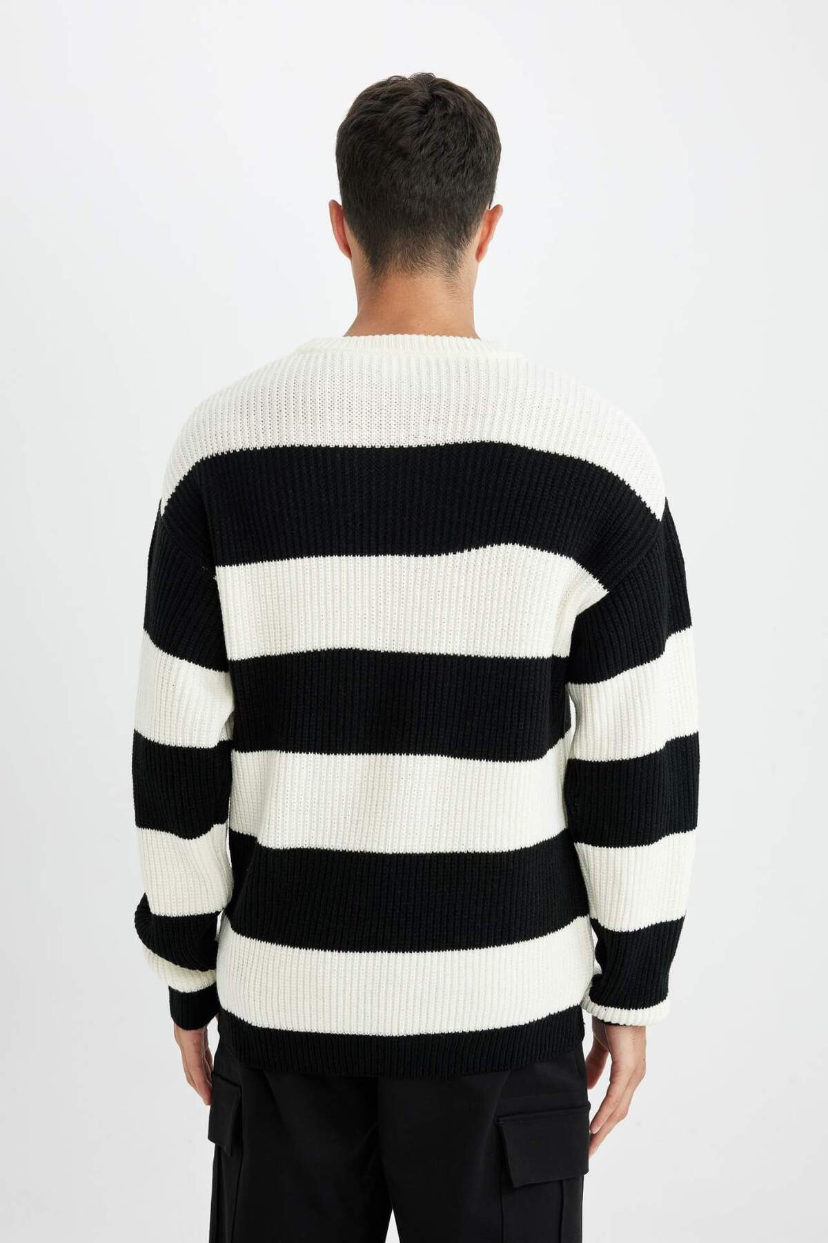 خرید اینترنتی ژاکت بافتنی یقه راه راه Relax Fit D3263AX24WN برند دفاکتو Defacto اورجینال از DeFacto نمایندگی ترکیه