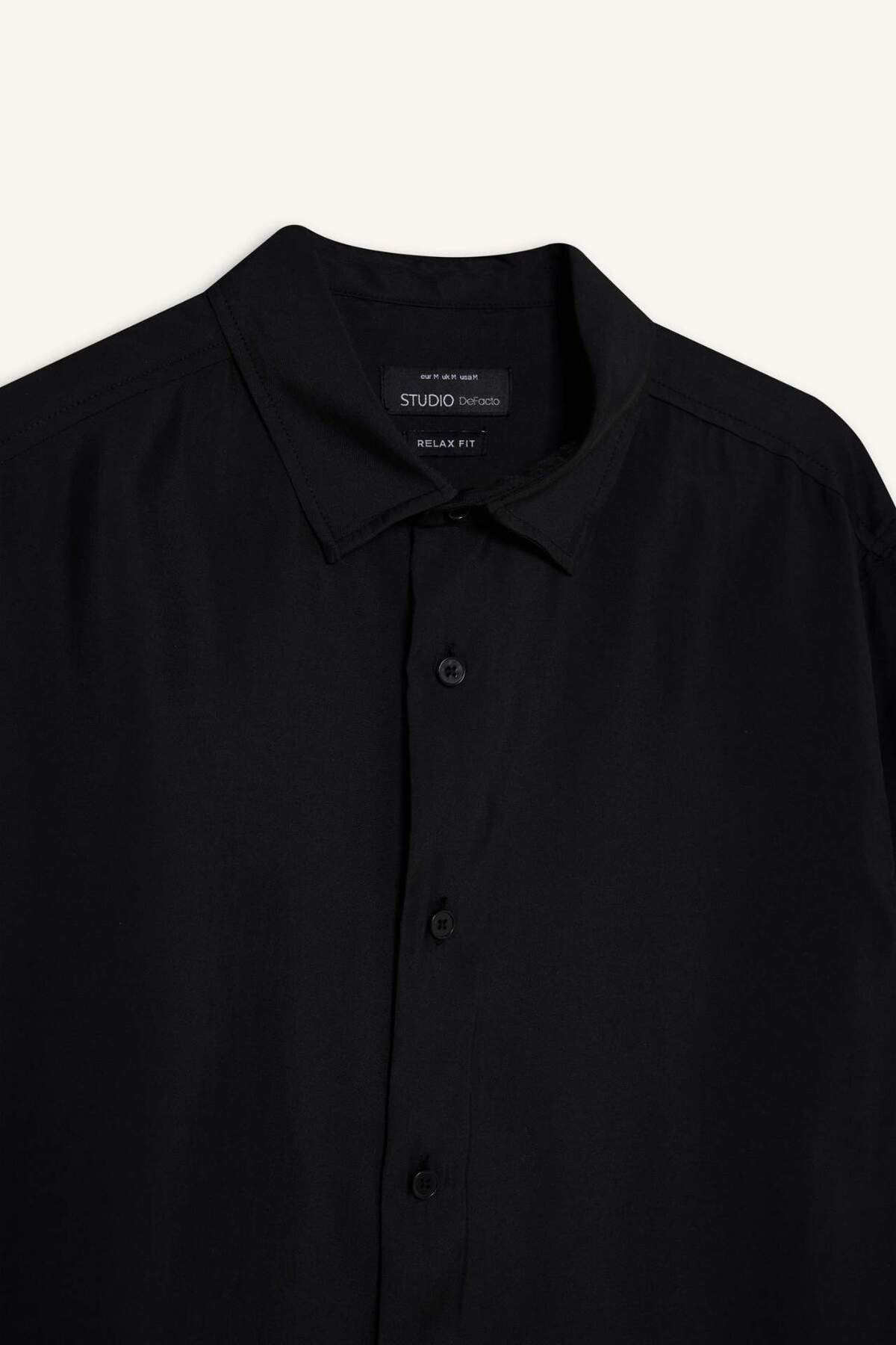 خرید اینترنتی پیراهن آستین بلند ساده و پایه مشکی ریلکس فیت یقه پولو تویل مدل D3376AX24AU برند دفاکتو Defacto اورجینال از DeFacto نمایندگی ترکیه