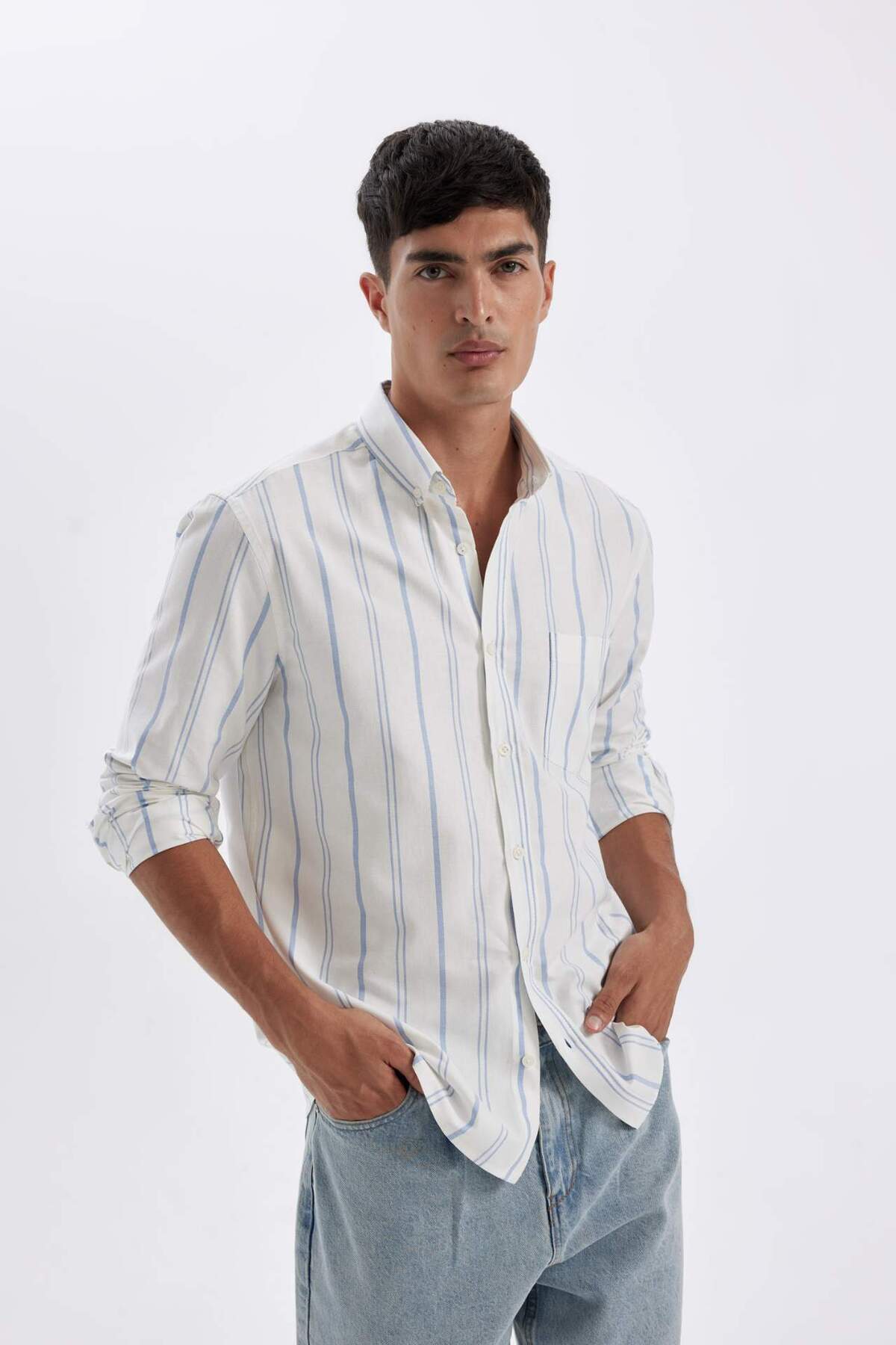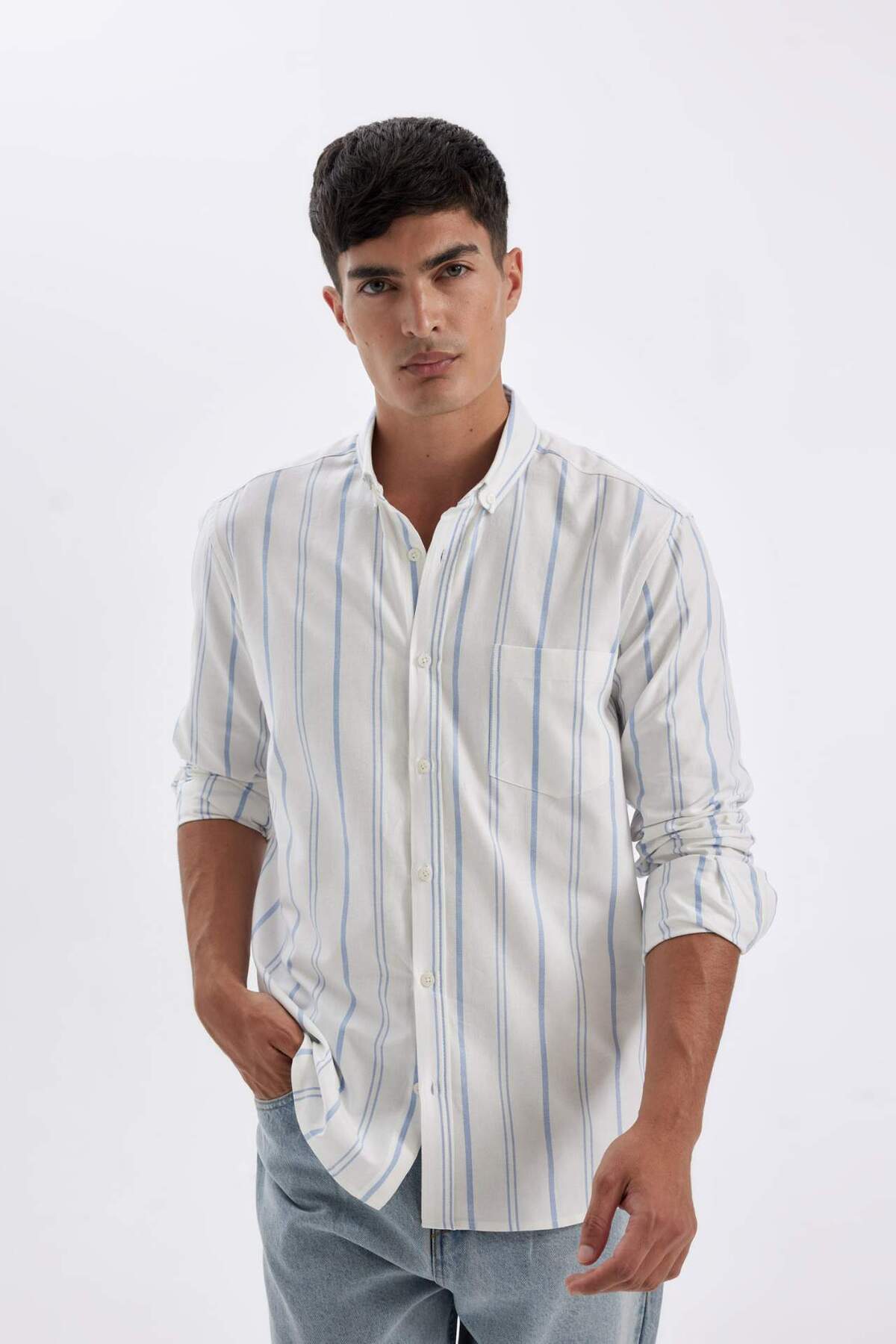 خرید اینترنتی پیراهن آستین بلند راه راه آکسفورد 100٪ با تناسب رگولار D3500AX24AU برند دفاکتو Defacto اورجینال از DeFacto نمایندگی ترکیه